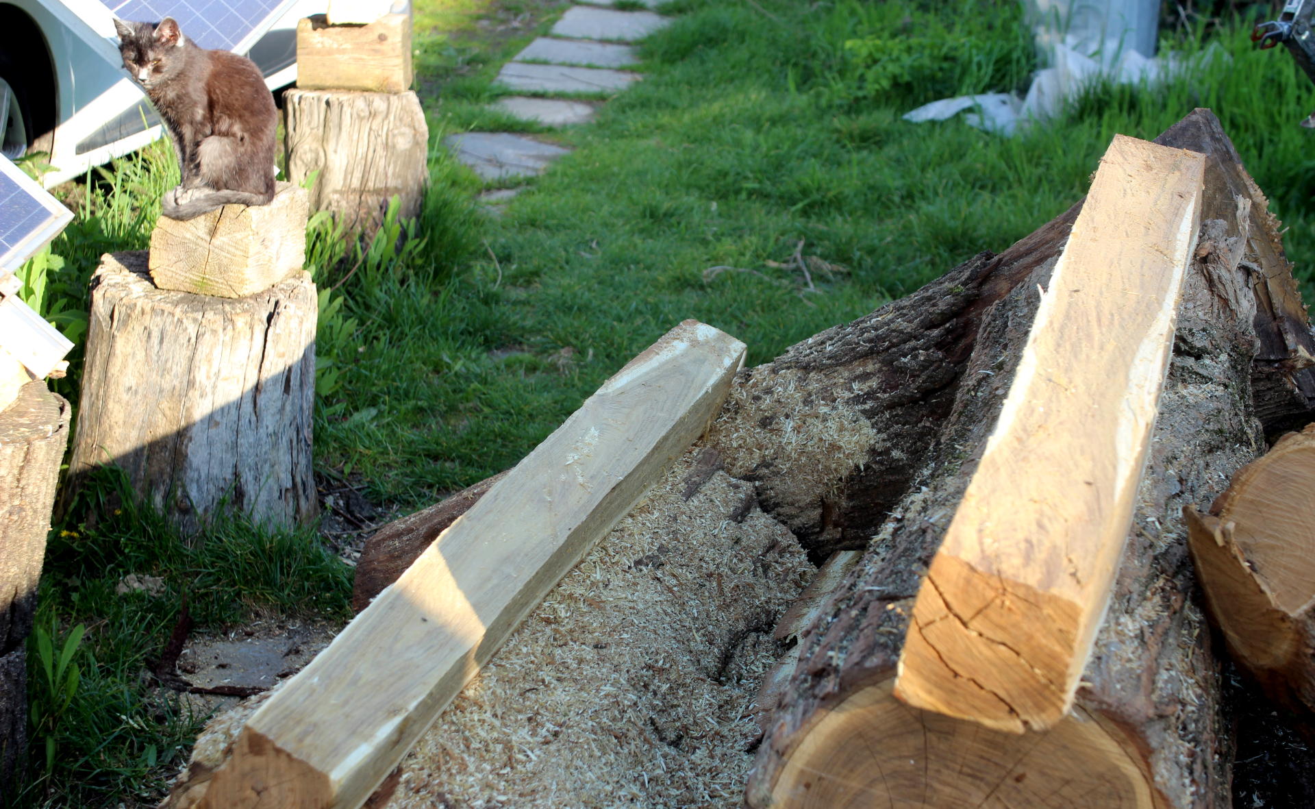 Technická k tomu řezání, katr z řetězovky je běžná věc, dokonce se to i prodává, takové jakože lešení. Dají se s tím nařezat nejen trámky, ale i fošny a desky.