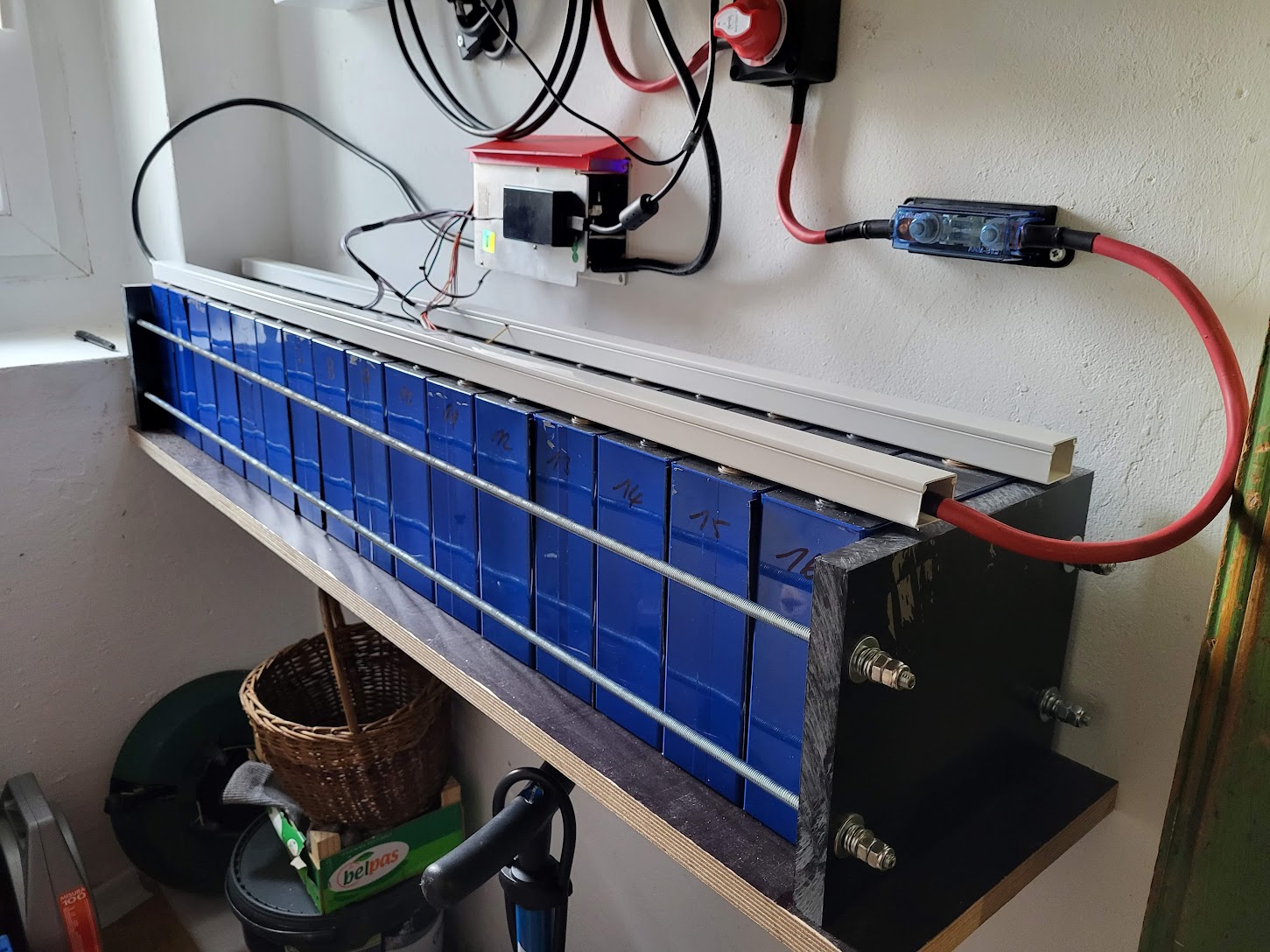 7.8kWp (12x650Wp jih 35°: 2p3s EpeverTracer6420AN, 3p2s AxpertKing), AxpertKing 5kW/150V. LiFePo 34kWh: 18x280Ah (2022)+18x315Ah (2026). 2xJBDBMS-UART->ESP32->grafana+vytěžování 60V/4.8kW do NADO750. 5x280Wp (2013)-> přímotop.
