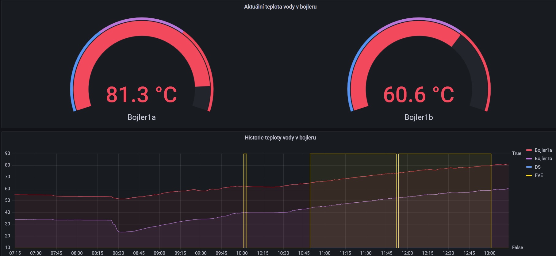 Tak voda 80/60 by asi mohla pro dnešek stačit. Jdu vytěžovač přepnout na "bazínkový" bojler.