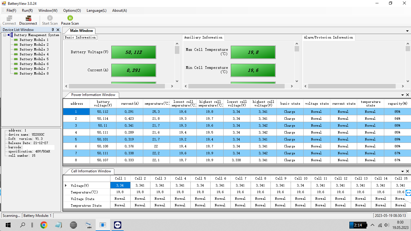 Kluci poradil by někdo, proč se nemůžu spojit s baterkama US2000C ? Zakoupil jsem USB konvertor RS232, podle návodu vytvořil propojovací kablík RJ-45 a stále nic. Nejdřív jsem myslel že je to jiným konvertorem s chiny, tak jsem koupil tento lepší a stále timeout. Baterie 4/2022 a program je 3.0.23 Díky.