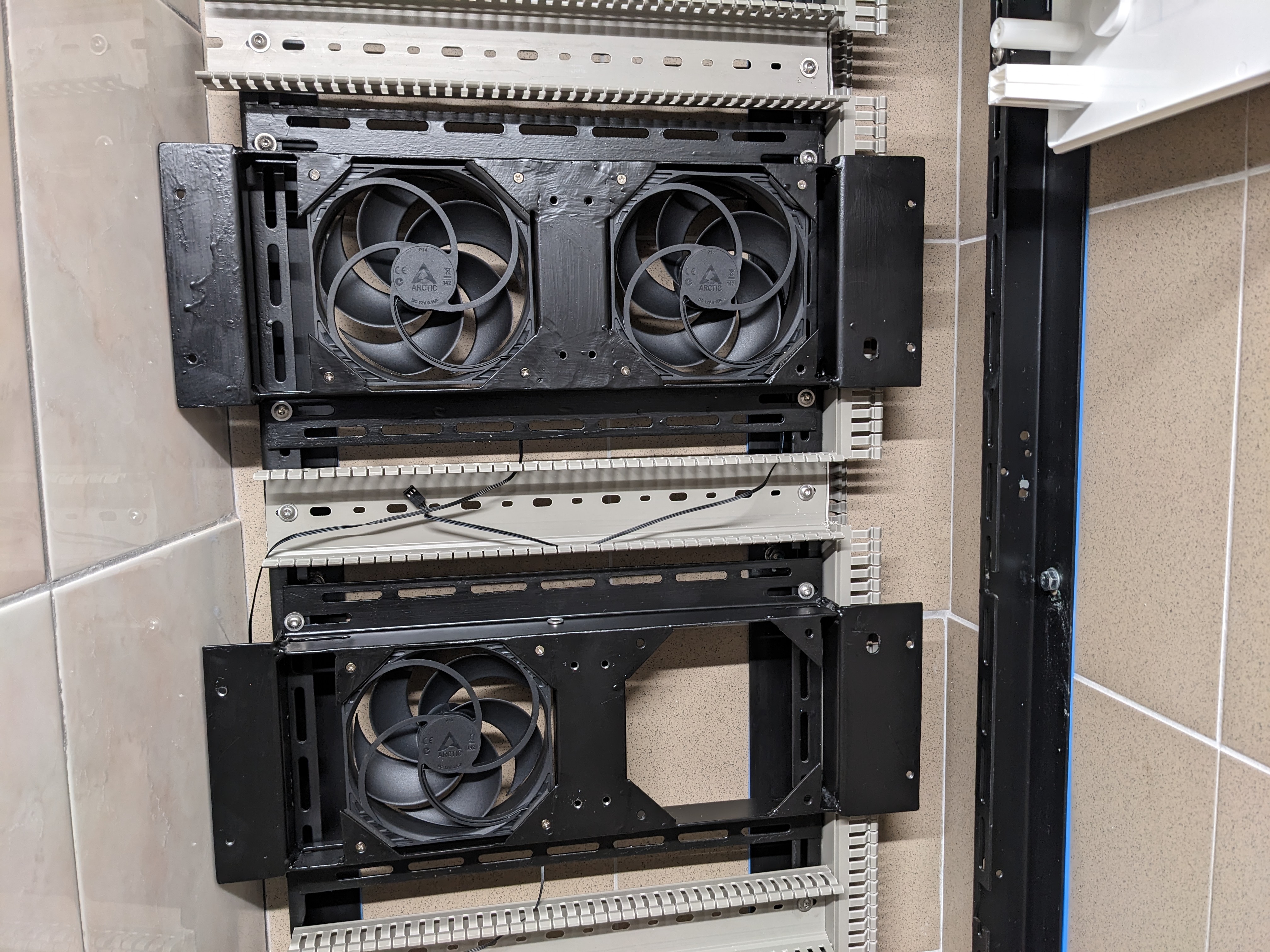 Stojky jsou po celé zadní straně podlepené 3mm modrou pěnovou páskou pro těsnění kontralatí na střeše a přes závitovky v chemické kotvě přišroubované do zdi. Stojky jsou asi 3mm U profil s podélnými dírami pro M6 po celé výšce, zdemontoval jsem v práci vyřazený rozvaděč, mezi ně jsem vložil parapetní kanál Kopos PK 90x55, po stropě vedu PK 110x65 Dal jsem tam i DIY MET: MP2 visí natvrdo, jen před montáží jsem použil trochu autohifi matroše, co mi zbyl: Oriony 48/12 9A budou pro napájení stávajícího systému 12/24V (0-aku-12V-aku-24V), který slouží pro ovládání a pohon rolet, vzduchotechniku, noční LED osvětlení chodby a pod. Teď tam mám 2 separátní nabíječky a 2x vyřazenou gelovku z UPS, další nabíječku + gel 12V mám pro signalizaci přetopení kotle, tak to sjednotím na jeden systém.Antrac1t píše:Pekna a cista prace, hlavne se mi libi zaveseni na te konzoli ...jen dotaz, daval jsi pod ti MP2 nejaky silentbloky popr tu konzoli? + ty oriony mas jako backup na switche a cctv?