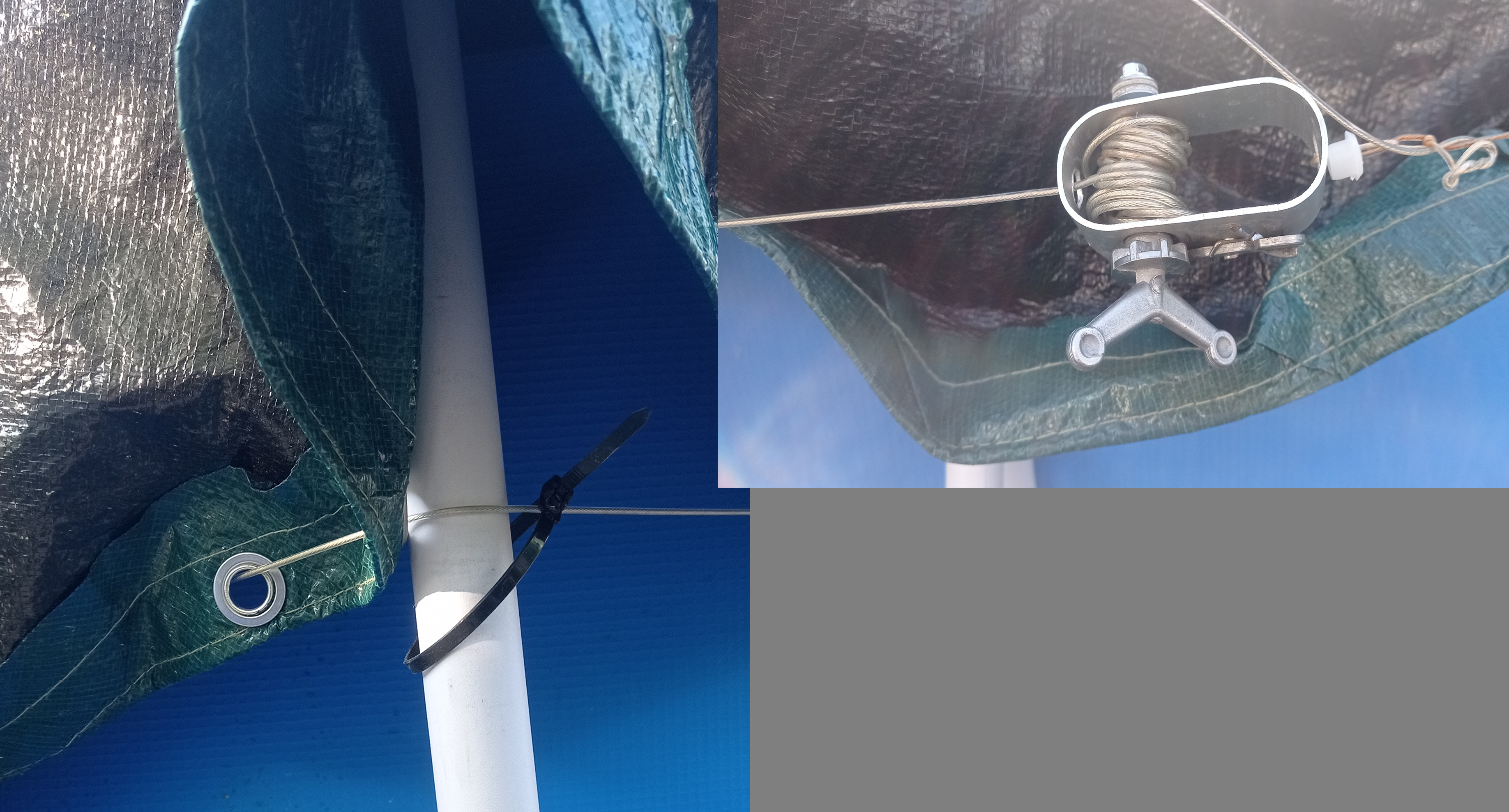 samozřejmě to lanko a na jedné třetině přivázané na kůlech mám,jen se nesmí zapomenout po vykoupání a když je vítr zakrýt,jinak je to plné jak říkáš,navíc je to pár metrů od lesa,takže ještě i další ...
