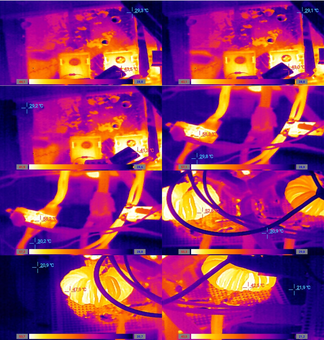 Teploty pri 2260 W - pol hodinu na stabilizovanie