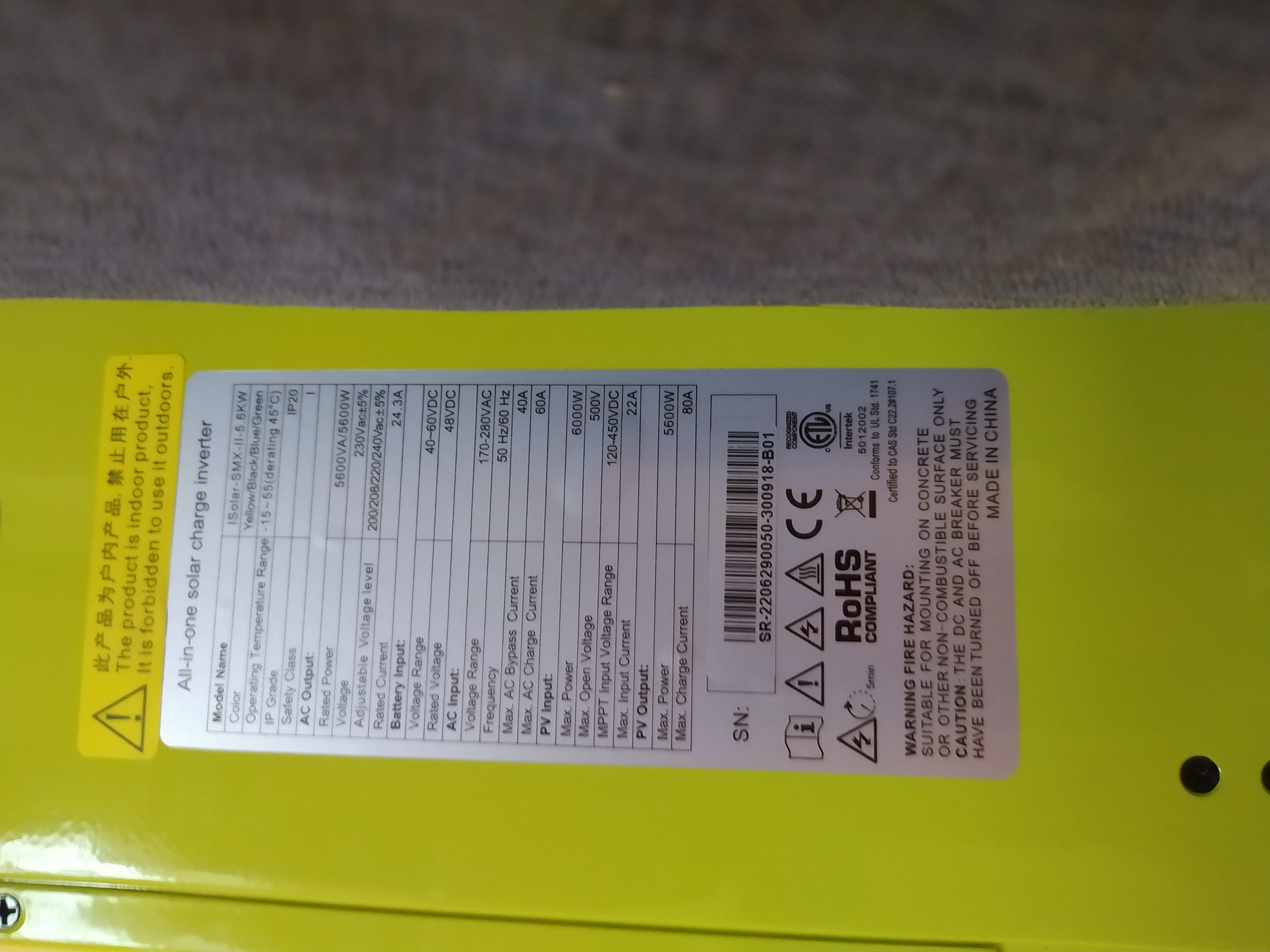 EPSolar 60 A/150 V ET6415N + 3x Isolar SM II (5 kW, 450 V, 80 A) + Axpert PIP 5048MS