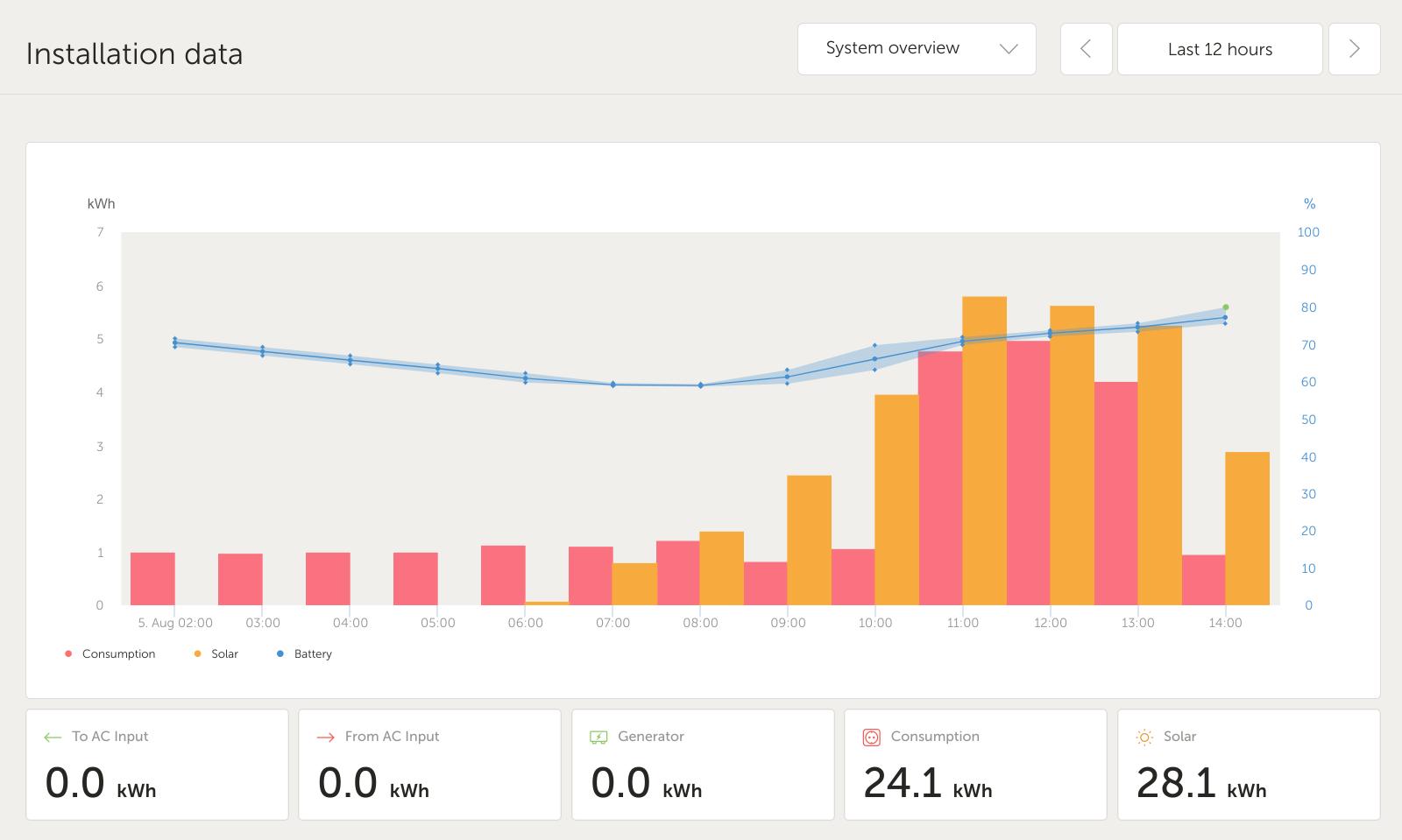U nás je ta spotřeba teď v létě obdobná (pokud nejede TČ na bazén), ale mám o 2kW v panelech míň a když je to takhle na hraně, tak je to znát. Včera jsem přivezl další 3 panely, takže to posunu na 7 kWp a už to bude taky lepší. Pravdou je, že takovýhle počasí jako je u nás letos jsem uprostřed léta dlouho neviděl (už dva týdny buď jenom zataženo nebo i prší a prší stejně prakticky každý den).