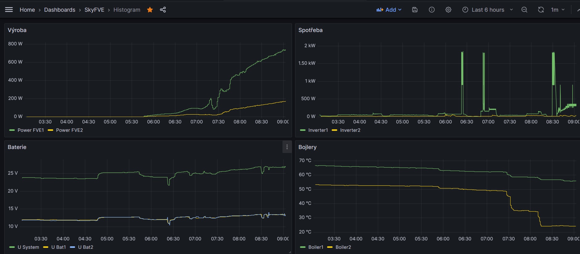 A neuvažoval si o pripojení domov cez VPN?skybor píše:Díky za tohle vlákno a vaše reakce. Nodered je můj hlavní FVE (a nejen FVE) zprostředkovatel monitoringu. Již delší dobu jsem uvažoval o sledování FVE vzdáleně, když nejsem doma. A zjistil jsem, že funguje zdarma (samozřekmě s jistým omezením) Influxdb a Grafana Cloud