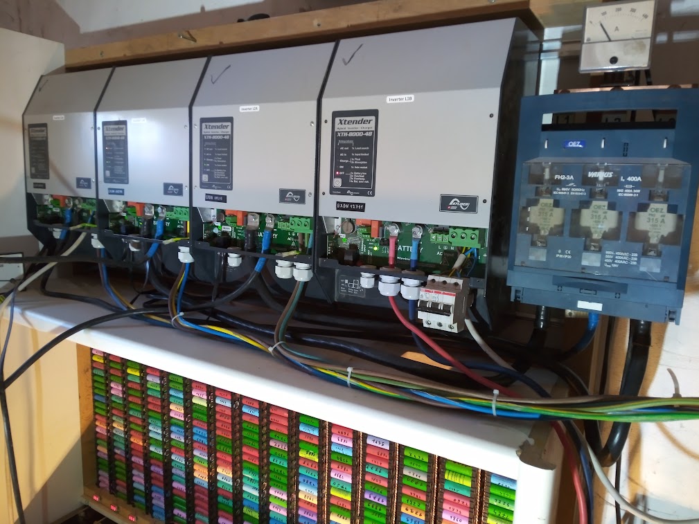 V provozu: ostrov 20kWp s dobíjením z DS, 6x XTM4000-48, 4xVT80, 80kWh LFP + Batrium