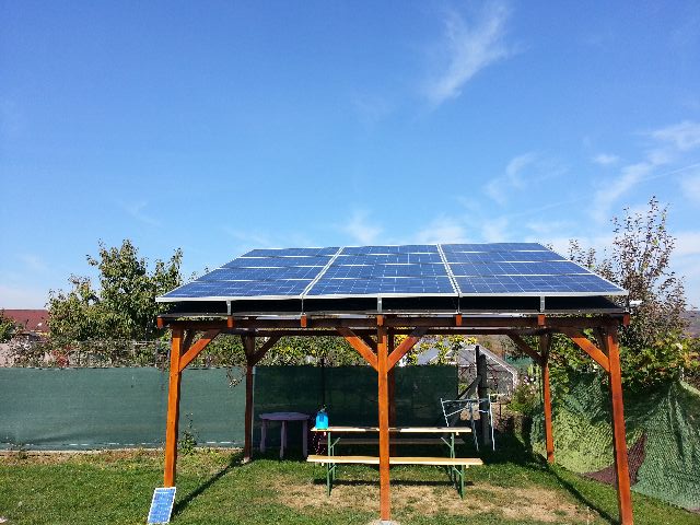 pridavam par foto , elektrika je tak na 90% hotova , zatial som za 114 dni vyrobil 1390kWh , ked nesvieti tak sa v noci prepina na DS ,ale uz o 9 rano to ide zas na solar , vypinam pri 47V a zapinam pri 50V , ako ochranu pred vypadkom solaru som pouzil zapojenie prepinaca solar-dc od Vaty funguje perfektne