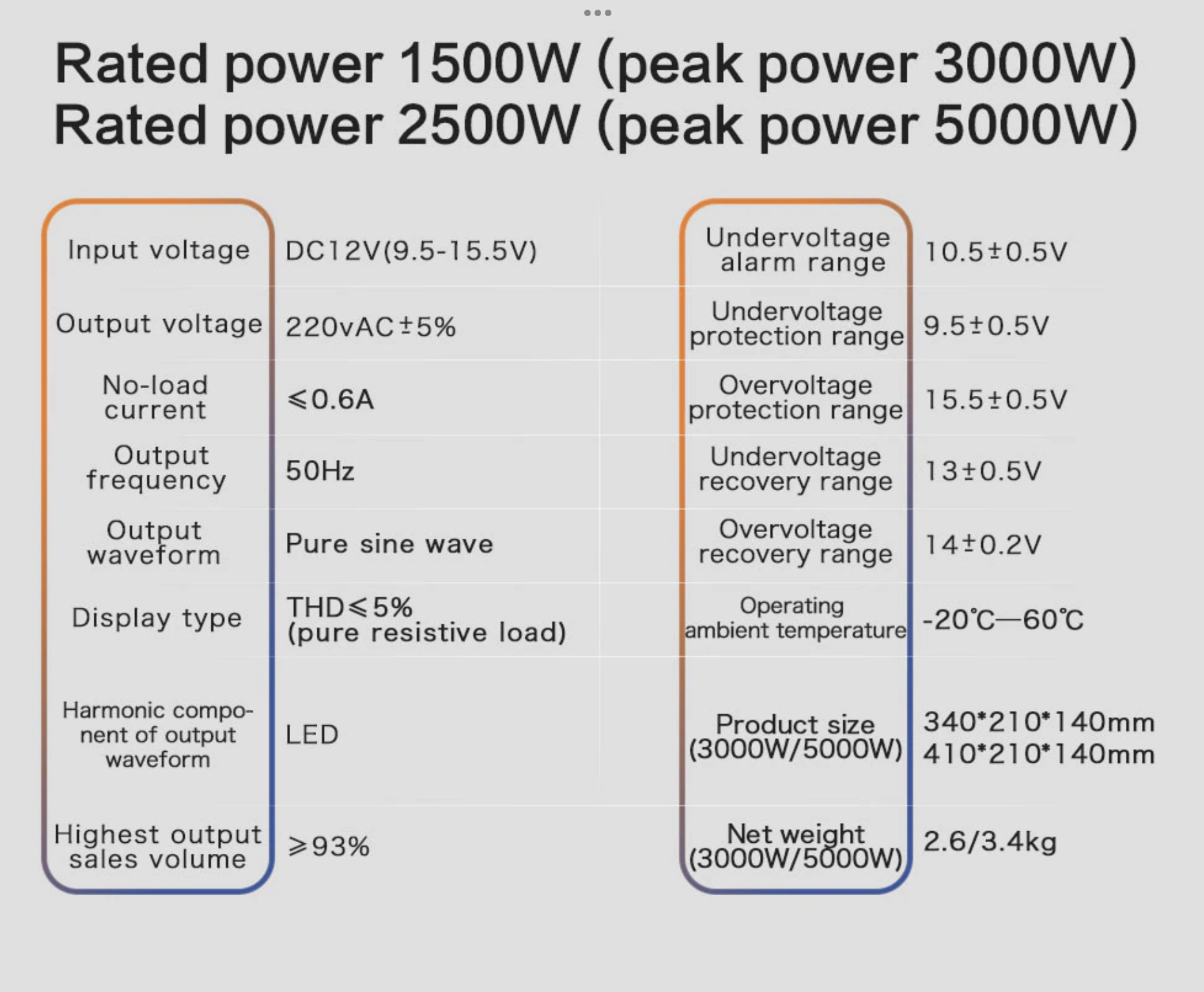 2500/5000W peak pure sinus