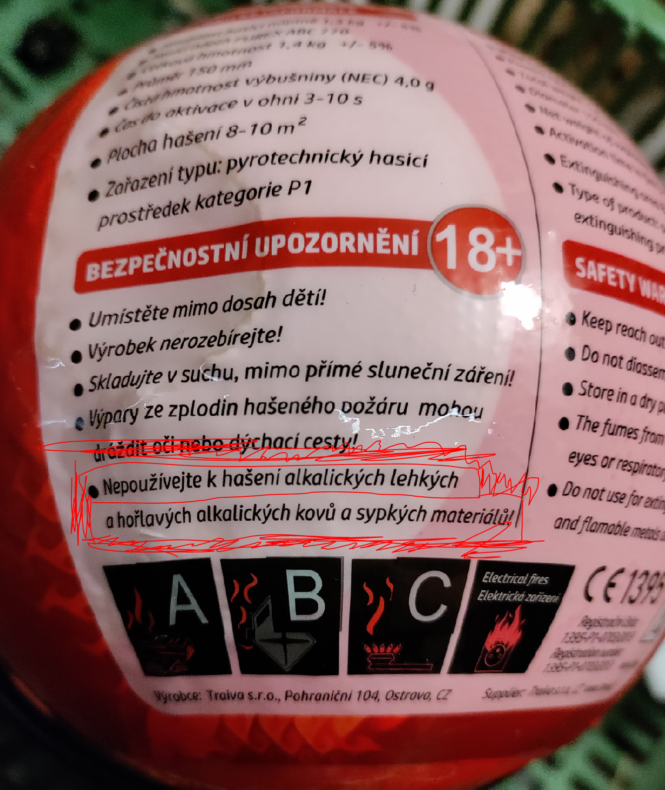Litium je ALKALICKY KOV. Takze si vlastne pouzitim tejto veci bezpecnost znizujem. Ako to vidite vy? Tyka sa to aj vas, co uz tieto hasiace gule mate namontovane? Alebo mam len ja nevhodnu verziu?