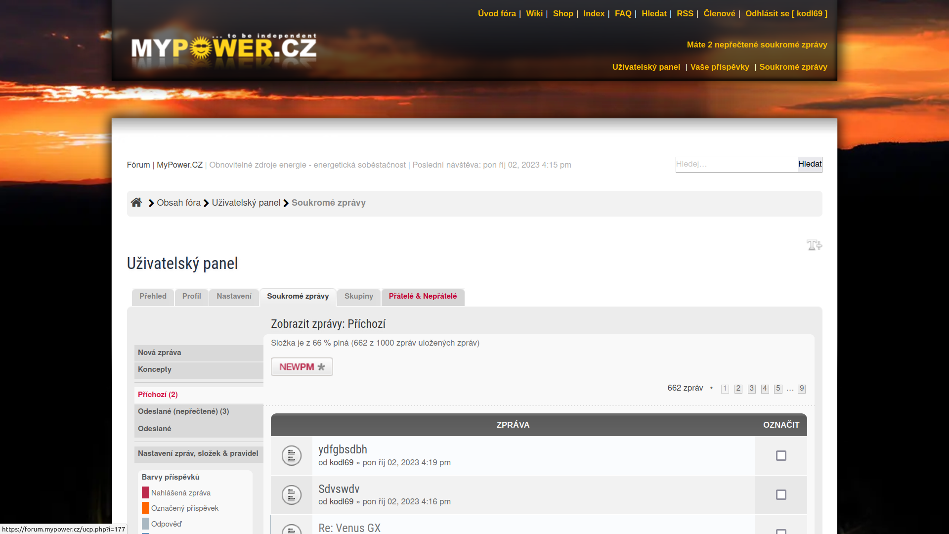 na fóru se nezobrazauje v hlavním menu odkaz do soukromých zpráv
