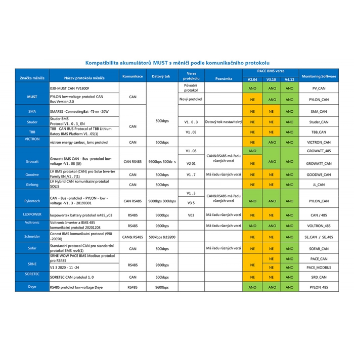 Kompatibilita komunikace CAN-BUS/RS485 akumulatoru MUST s meniči