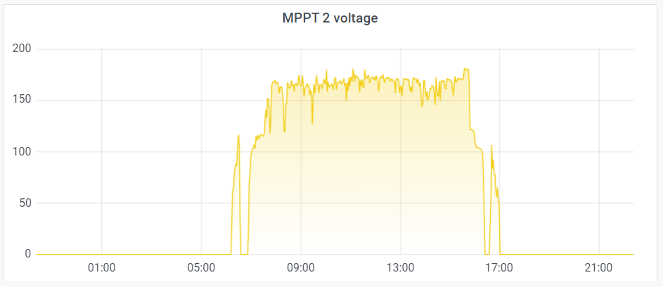 Dnešní grafy z obou MPPT:PetrDubi píše: pát lis 03, 2023 5:08 pmJá jsem měl Marku spíš na mysli jedtli už ti to napětí jde nahoru a nezůstává na těch 90V?