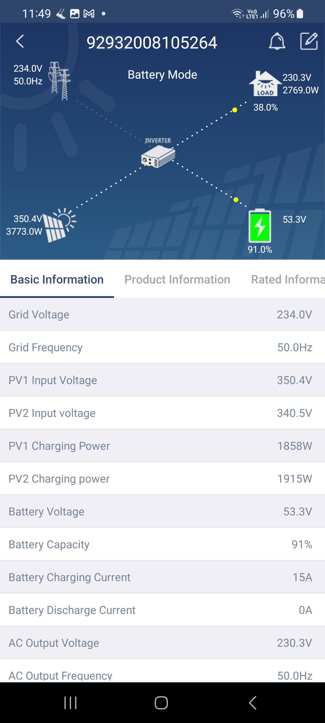Jinak ten levný Easun 5,5kW za cca 10000kč neudělá přetok na rozdíl od Victronu. Má přepínací relé. V line mode jde celý výkon z panelů do baterek a celá zátěž jde z DS.