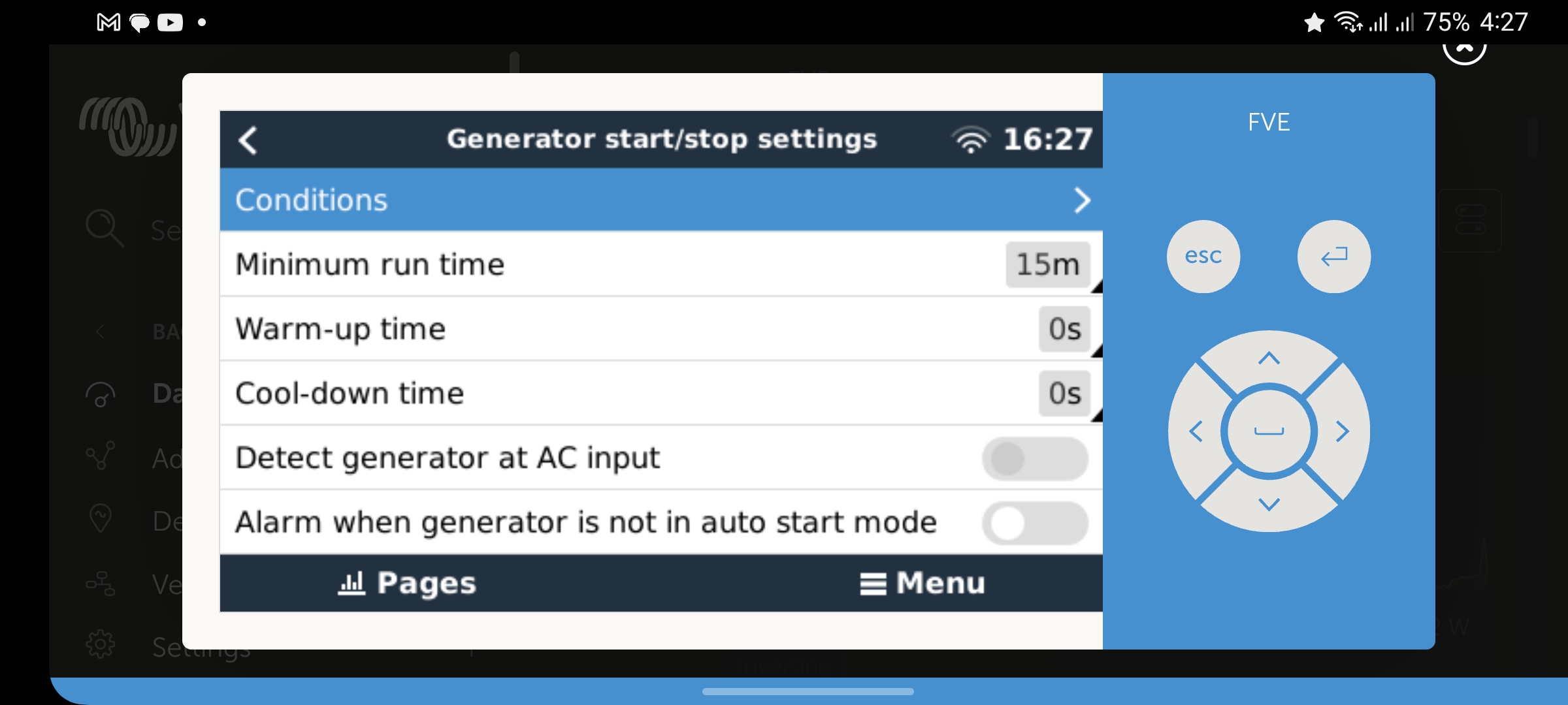 ono to skoro tak je, ve výsledku to není složitý, ale jak píše Dagus. -Ostatně dík za info, nastavena minuta na rozjezd (možná to bude zase moc, a bude vypadávat multiplus na přetížení), ráno to pracovníci otestují v praxi... ta nepřehlednost Venus OS je strašlivá, v podstatě nikde není komplet struktura menu s tím, kam můžeš jako user, technik a superuser. Schválně jsem si nastavil režim uživatel, a přijde mi, že "bloody fucking user" toho může v systému dost rozdrbat. To se mi taky nelíbí, ale zase to nastavit do režimu se zablokovaným touch vstupem mi nepřjde jako dobrý.