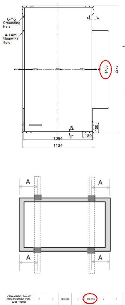 Ale polohy pro ty šrouby jsou zase jinde, dokonce mimo doporučený rozsah pozic pro svorky pro daný panel.