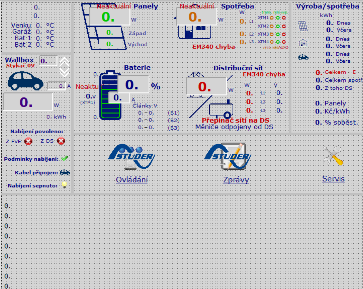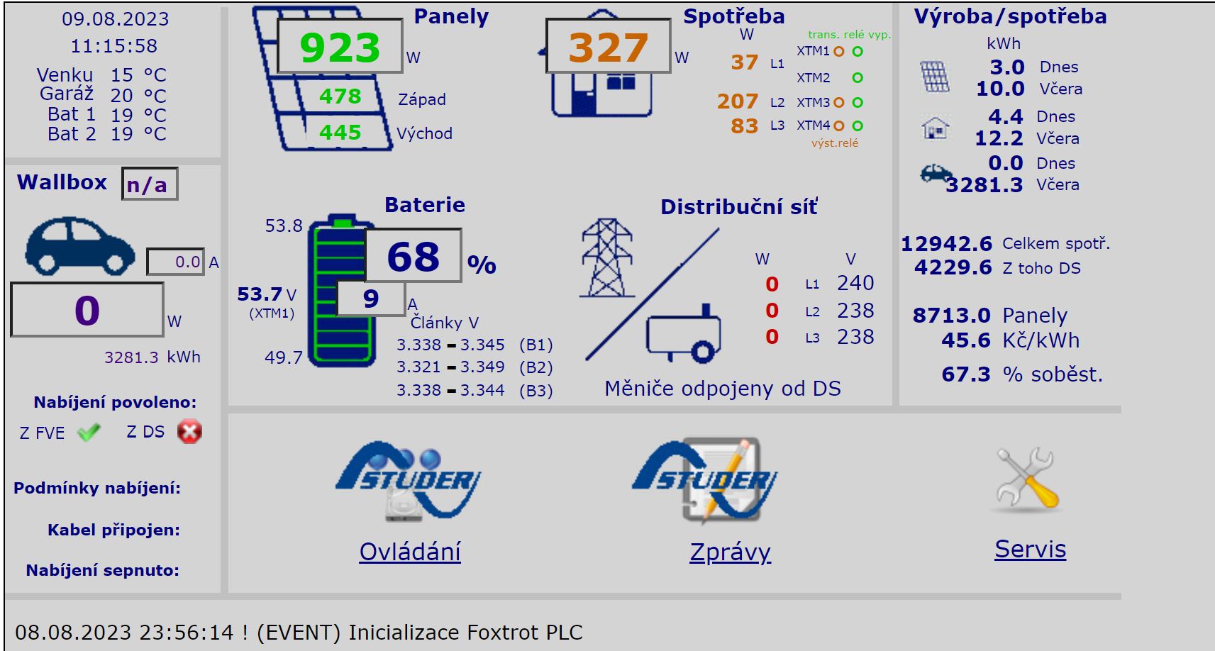Pro dlouhodobé logování využívám standardní datalogger Foxtrotu (1x denně denní výrobu/spotřebu apod. a dále jednotlivé zprávy ze Studeru a další události):