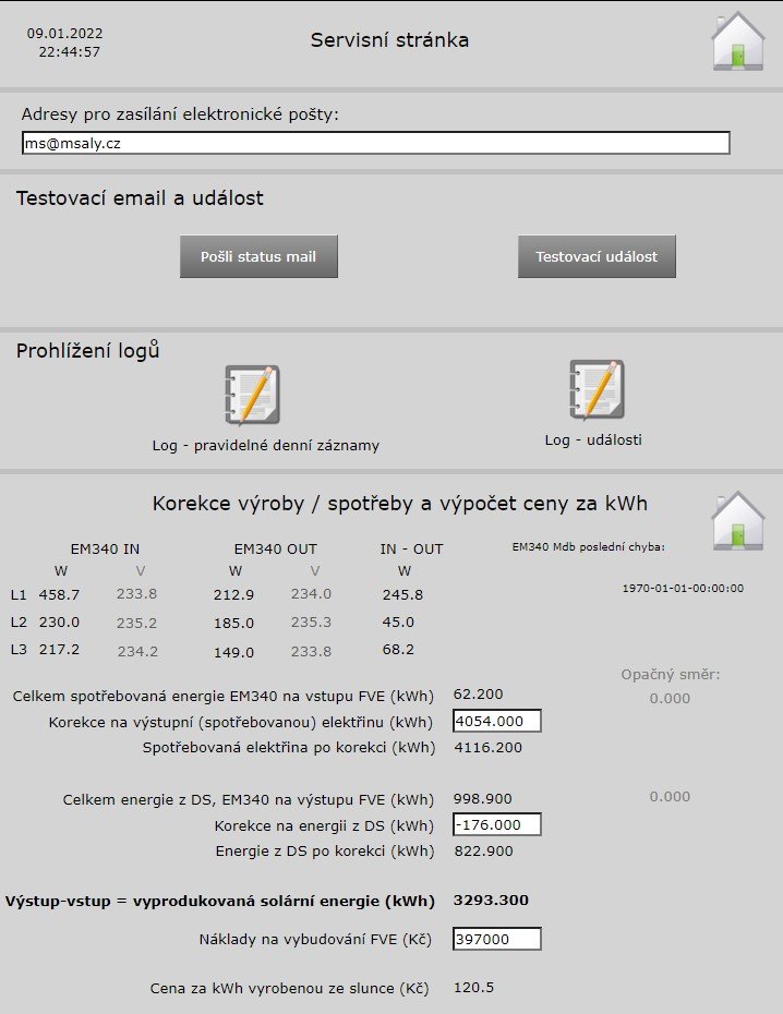Některé "servisní" záležitosti. Měřím spotřebu AC na vstupu i na výstupu FVE, používám 3x EM340 napojené do Foxtrotu přes Modbus/RS-485.