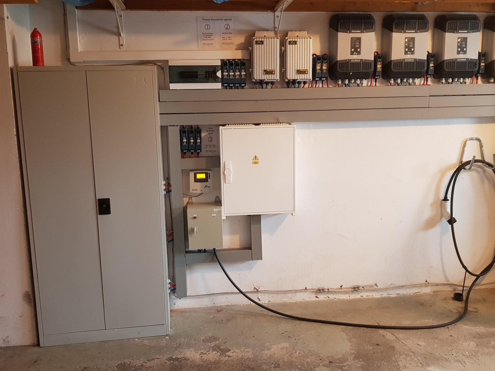 4x Studer XTM 4000-48 (3f zapojení: 2xL1, 1xL2, 1xL3), 2x VT-80, BSP, RCC, XCOM-LAN, XCOM-232i