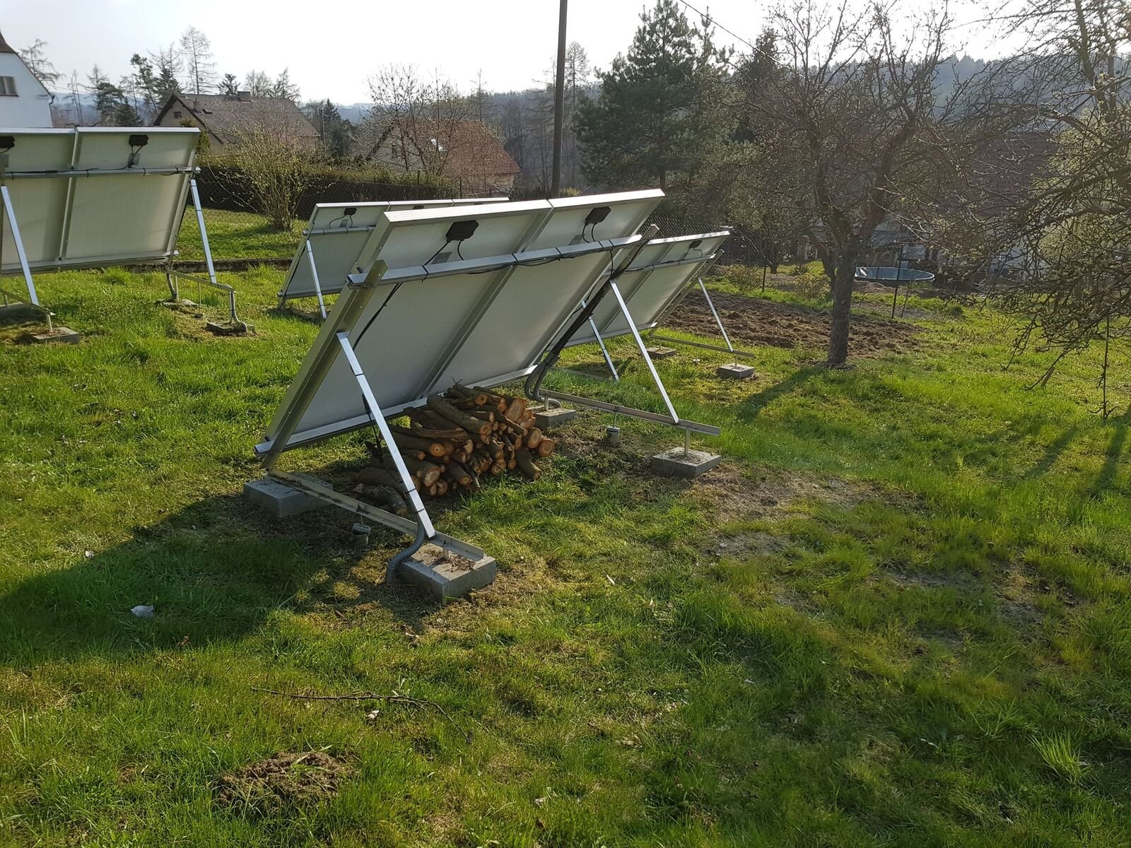 Toto už je historie - původní "zahradní architektura" s 10x Jinko 225Wp jih 50°: