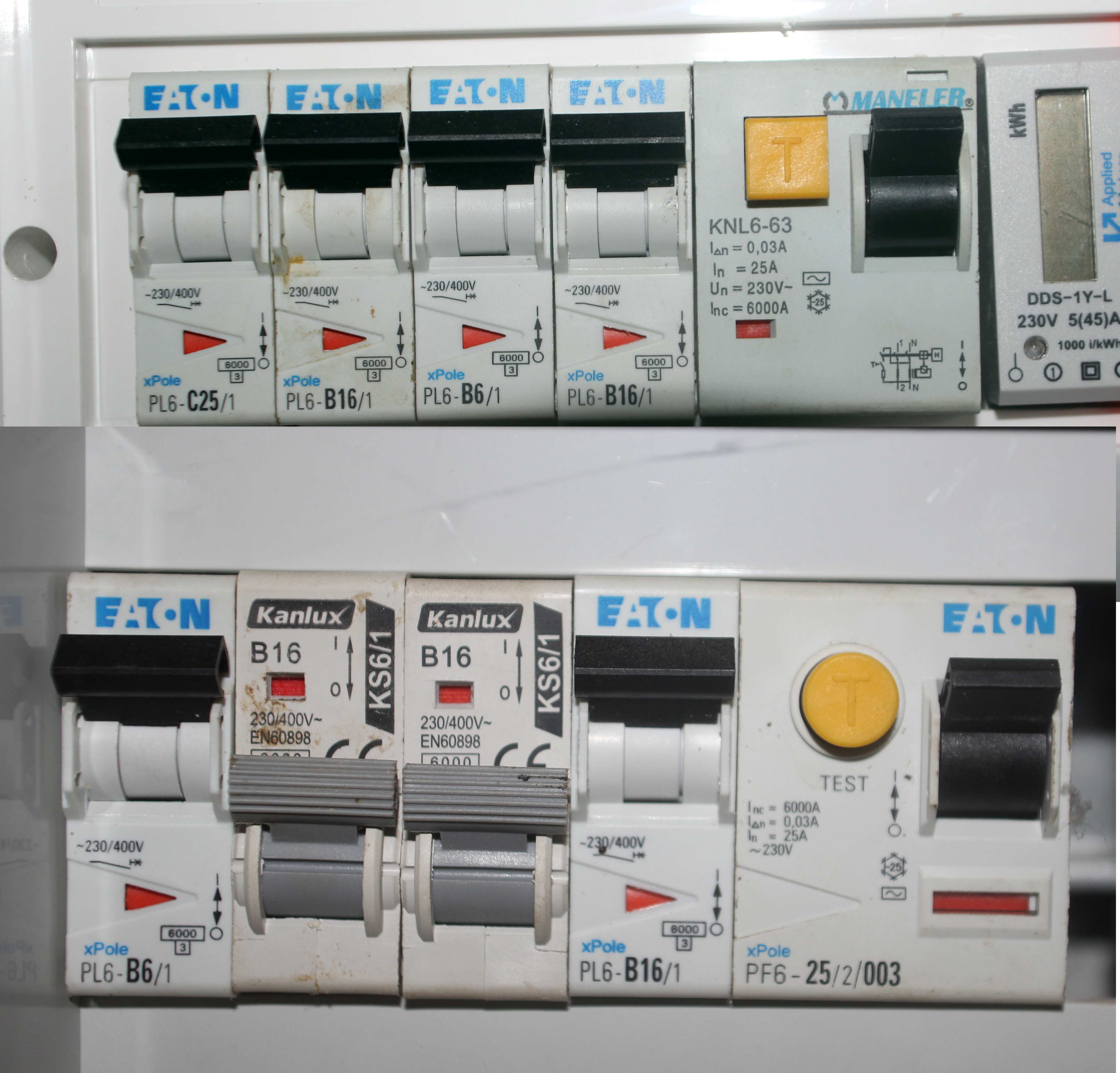 Vlavo dole je original domovy rozvadzac, v pravo dole novy FVE rozvadzac (ten co je v predoslom prispevku na fotke).