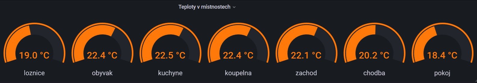 V přízemí je stejná teplota 22st, v patře 21st. V koupelnách 23st. (topení do podlah).