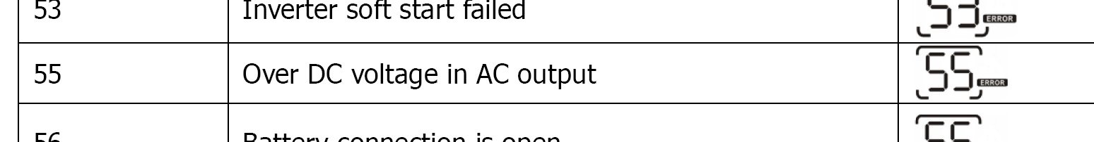 Jinak koukal jsem do návodu mustu a tam je taky popsána chyba 55 DC napětí na výstupu AC, ale jinak nic pouze že na AC in máš dát jistič s zajímavou hodnotou pro můj 3kW tam má být 32A tak já nevím jak to počítají - já tam mám 25A a to jenom proto aby to při bypassu prošlo......