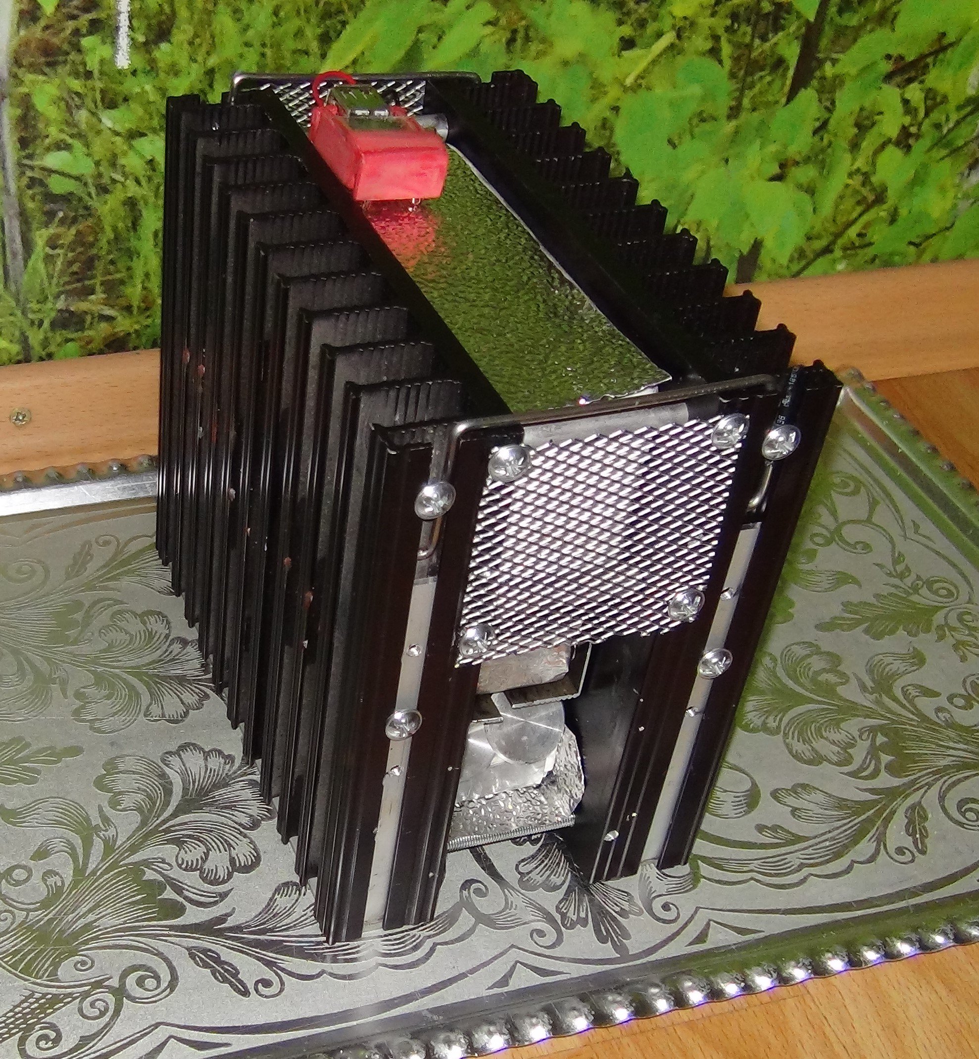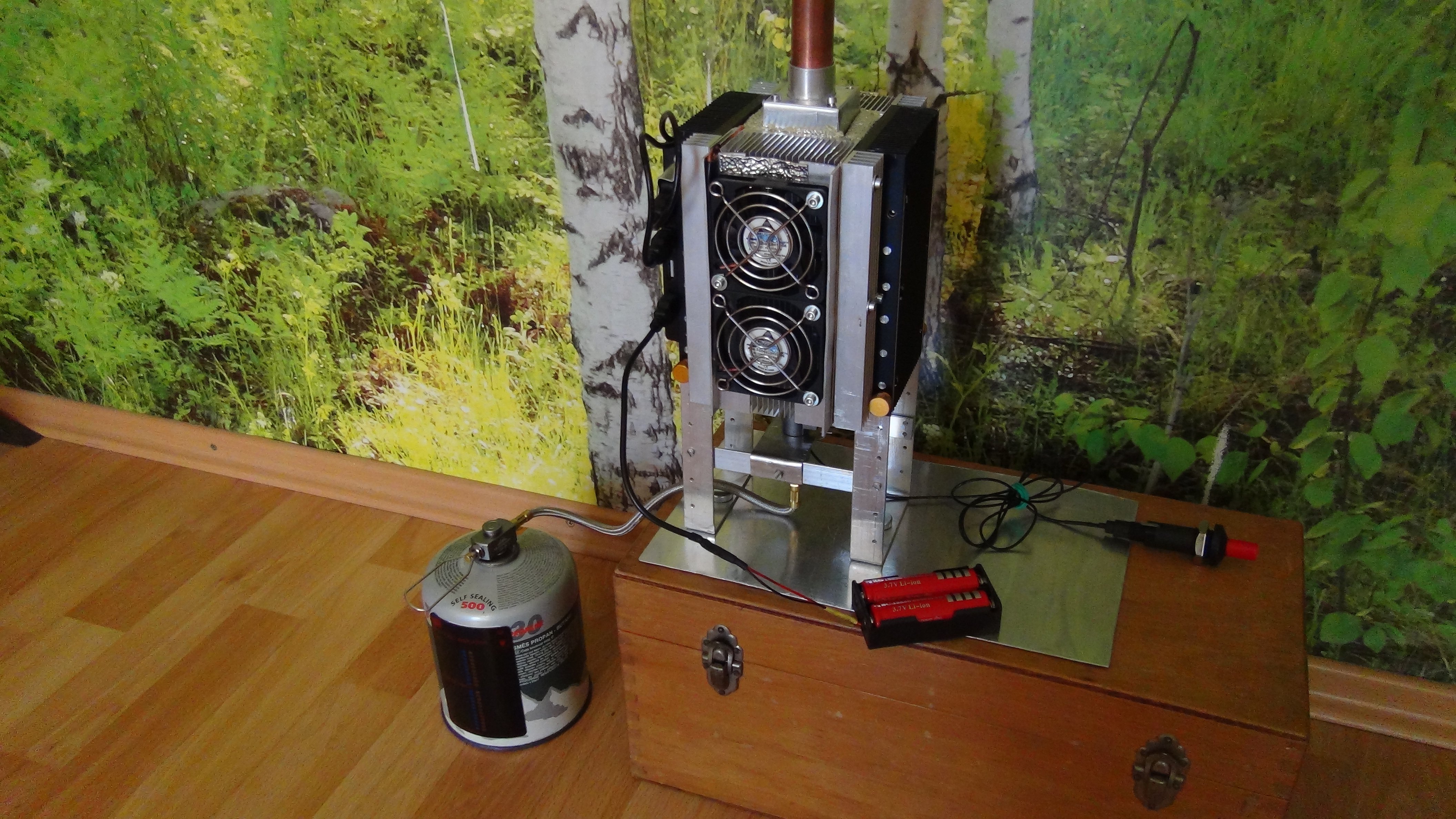Netradičné zdroje energie sú jedným z mojich koníčkov, a termoelektrické zdroje, aj keď nie sú tak známe, a masovo využívané,k nim rozhodne patria. V poslednom desaťročí sa kvalita, výkon, dostupnosť a hlavne cena Peltierových článkov na produkciu elektriny (TEG) dostala na úroveň vhodnú pre bežného kutila. Vyrojili sa aj rozličné vychytávky pre outdoorových dobrodruhov využívajúce tepelné zdroje na produkciu elektriny pomocou TEG (drievkáč BioLite,kachle Indigirka,a pod). V snahe dosiahnúť rozumný el.výkon a prenosnosť sa u týchto zariadení používa aktívne chladenie (ventilátor). Ventilátor je chúlostivý stroj, trpí nárazmi pri transporte, prevádzkou v znečistenom prostredí, spotrebuje značnú časť vyrobenej elektriny-je teda najslabším článkom týchto zariadení. Najhoršie však je, že pri výpadku ventilátora za chodu zariadenia dôjde k prehriatiu studenej strany článkov TEG (štandartne 200°C), a tým k ich nevratnému poškodeniu. Preto som termoelektrické generátory s aktívnym chladením vyhodnotil ako nevhodné pre PA, a rozhodol som sa skonštruovať niečo odolné, blbuvzdorné aj za cenu vyššej hmotnosti a nižšej účinnosti.