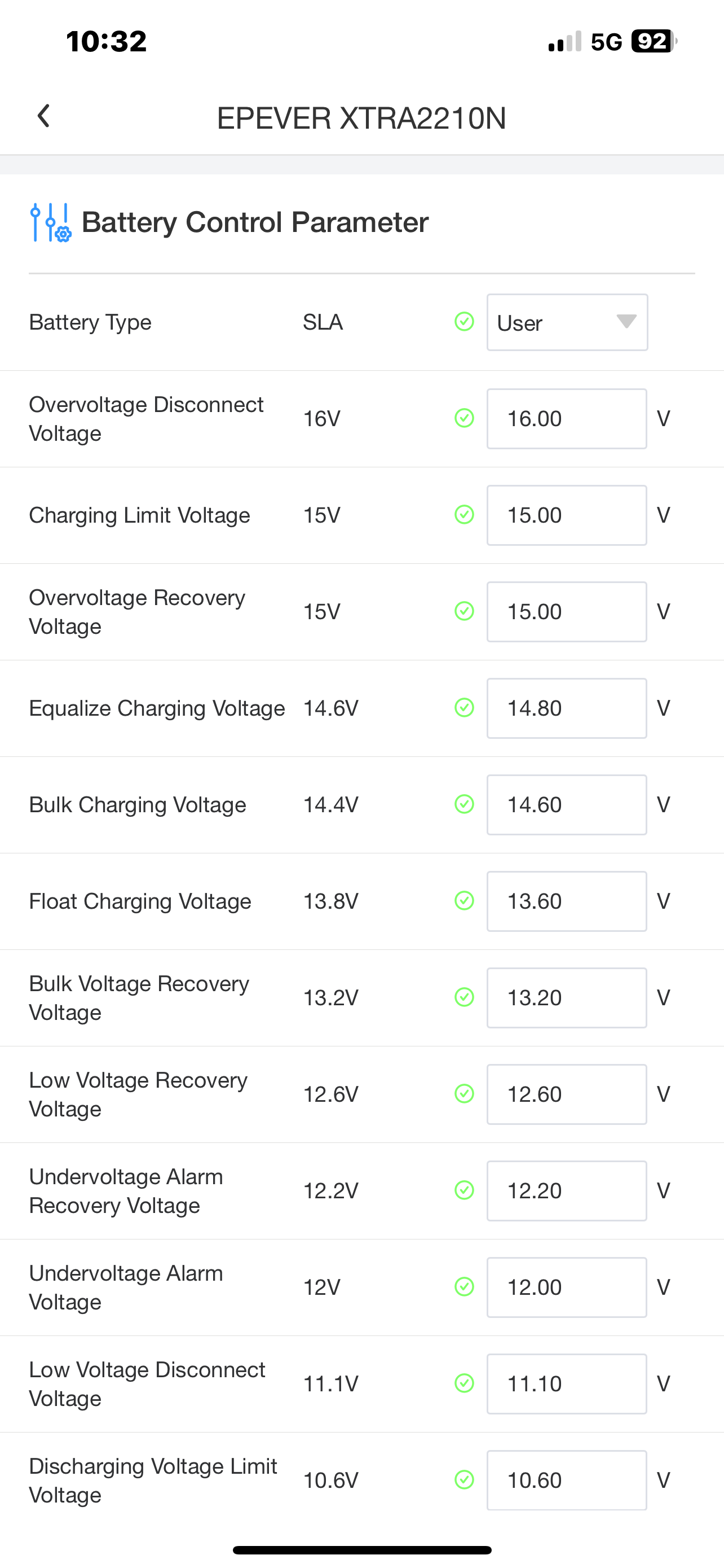 Muj dotaz: vše funguje, ale vyuzil jsem default nastaveni pro “flooded” baterii a dnes MPPT dobijel baterii i na 15,2V pri maximalnim peaku svitu slunce, to mi prijde moc, ocekaval jsem, ze MPPT tohle ohlida na 14,8V, nejsou mi uplne jasne vsechny parametry viz prilozene foto konfigurace. Mohl bych poprosit o pripadnou korekci udaju v nastaveni “USER”? Uplně mi neni jasne, jak presne funguje ten “boost”, jak nastavit, abych baterii zbytečně nezkracoval zivotnost? Vyrobce baterie uvadi:
