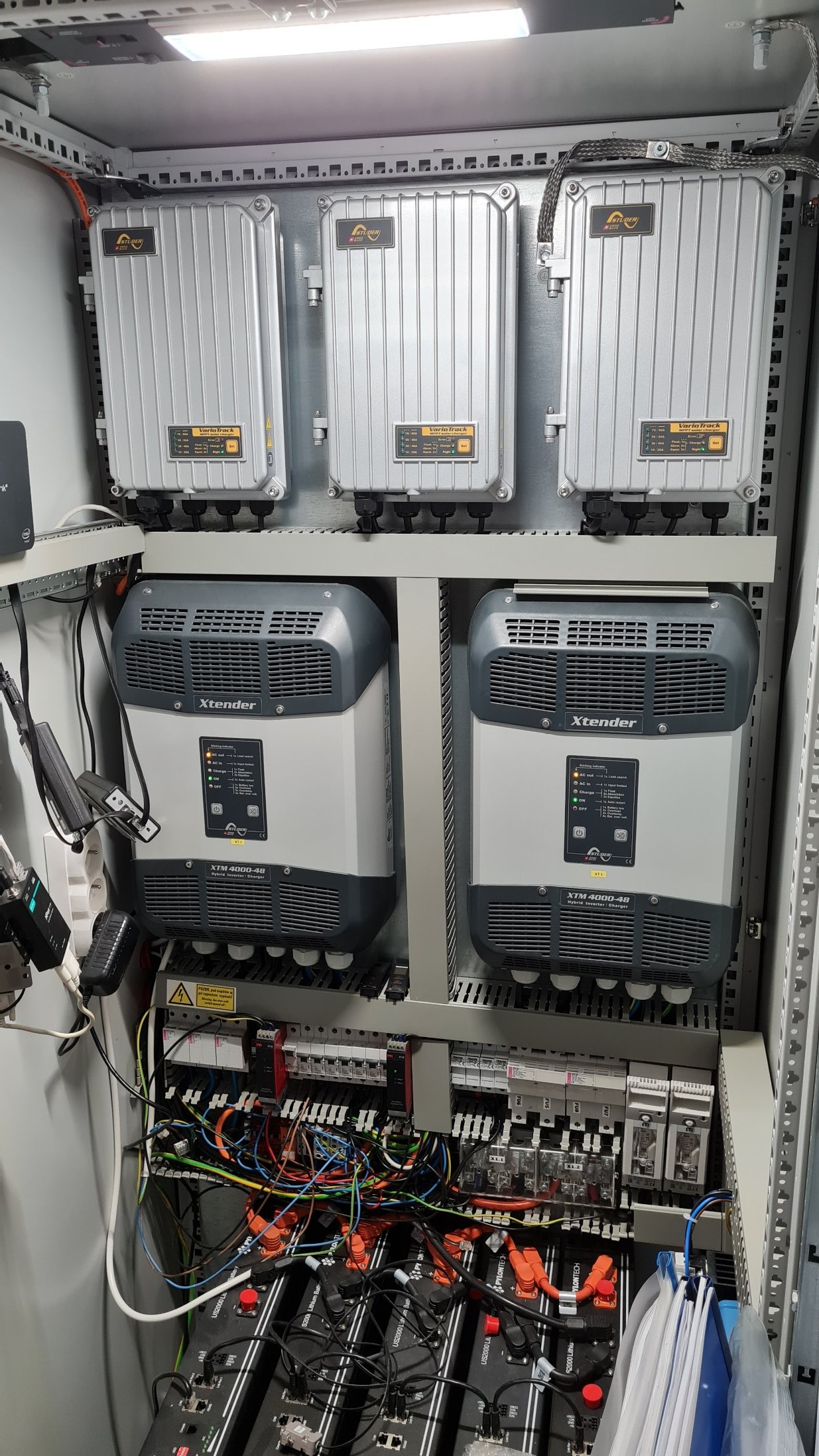 Nabízím k prodeji plně funkční fotovoltickou sestavu značky Studer, která je momentálně namontována a připravena k ověření přímo u mě doma. Systém obsahuje regulátory VT-65, měniče XTM-4000-48, komunikační moduly a další originální komponenty ze Švýcarska. Je možné ji nastavit jako hybridní systém s možností paralelního zapojení a rozšíření výkonu. Prodávám také jednotlivé díly samostatně, možnost dopravy po Slovensku a k českým hranicím.