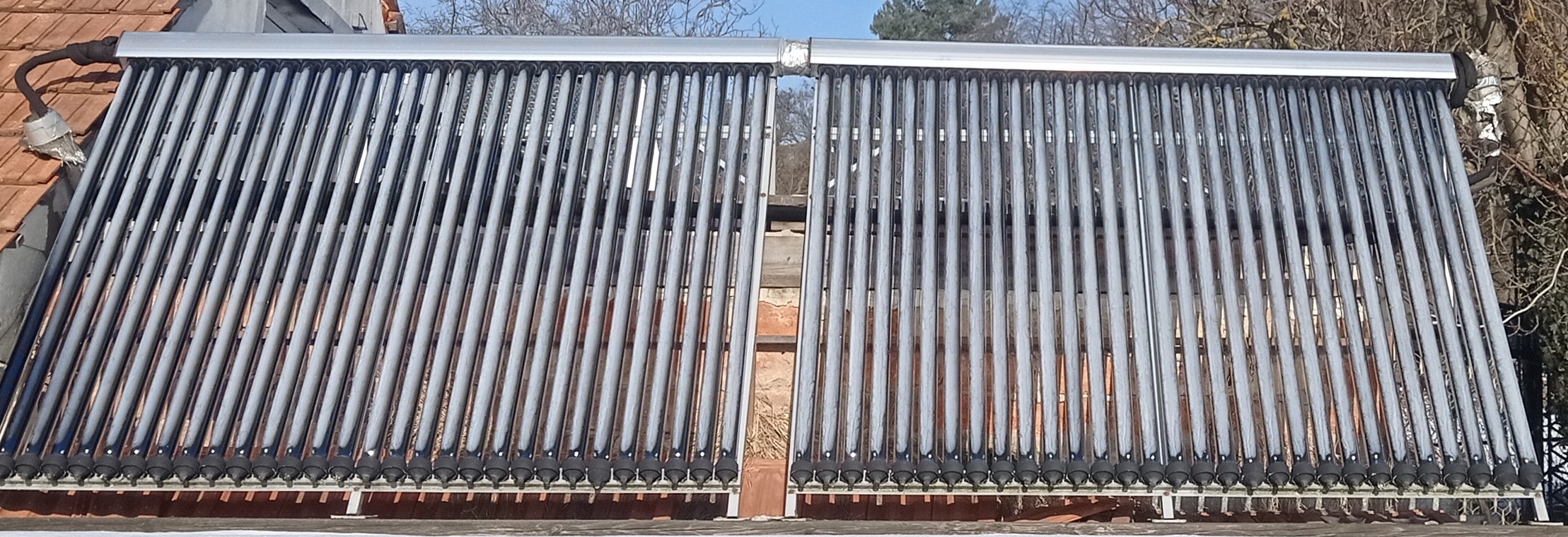 Je ideální počasí na kontrolu fototermiky. Námraza na heatpipe trubicích mizí všude stejně, tedy vakuum je neporušené.
