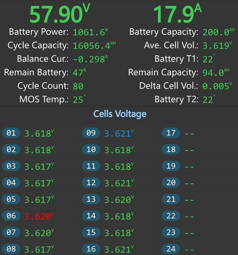 Baterie pouzivane rok v pralelnim zapojeni s menicem MPP Solar PIP5048MKX (pouze 80 cyklů). Tento menic umi nabijet do 64v (4v článek...).