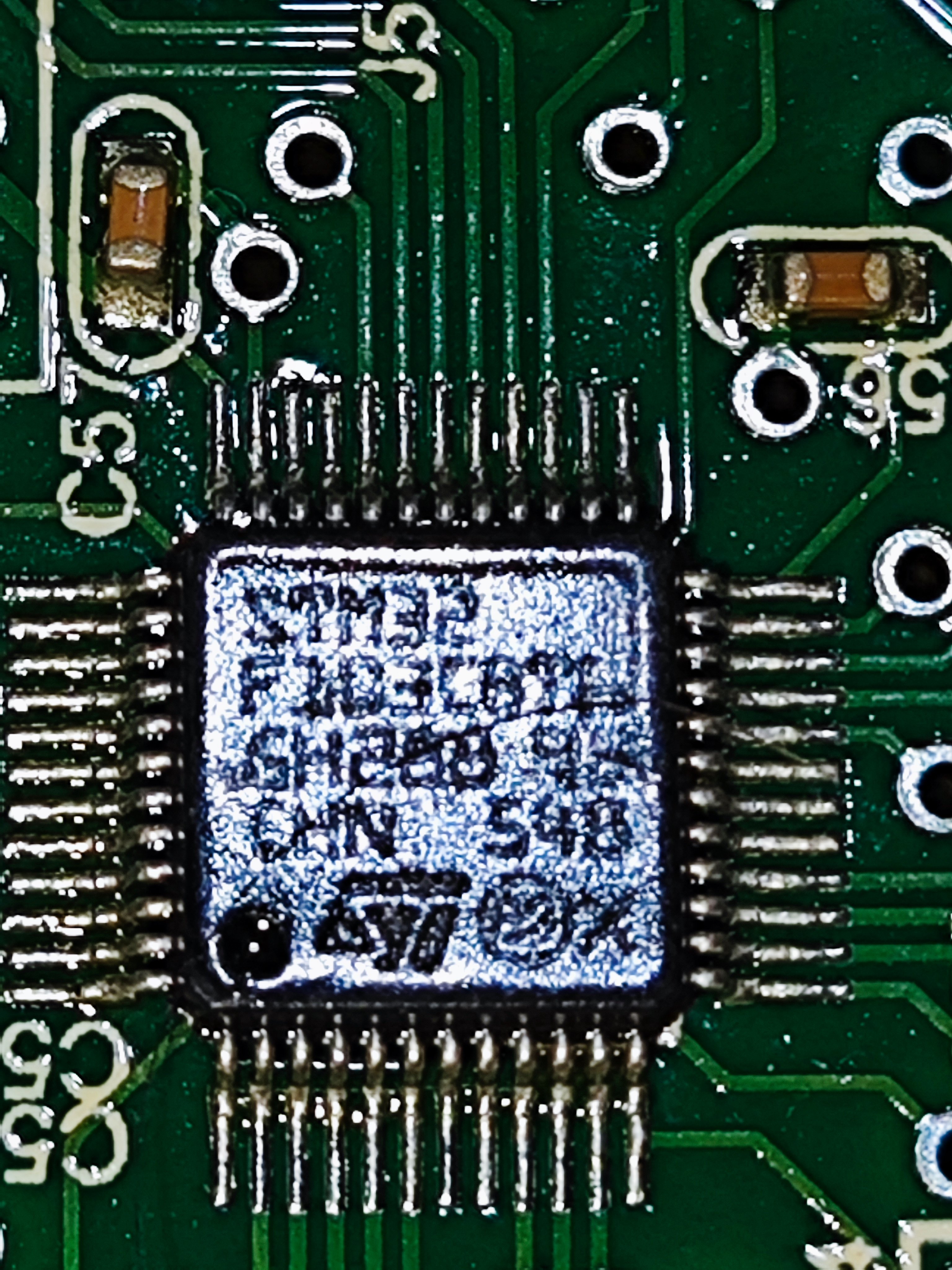 Je to přelakované ale je to asi stm32f103c6t6 který se dával do Arduina. Ten je na 3.3V a kontrolní ploška s popisem 3.3V co jsem na desce našel je bez napětí úplně.