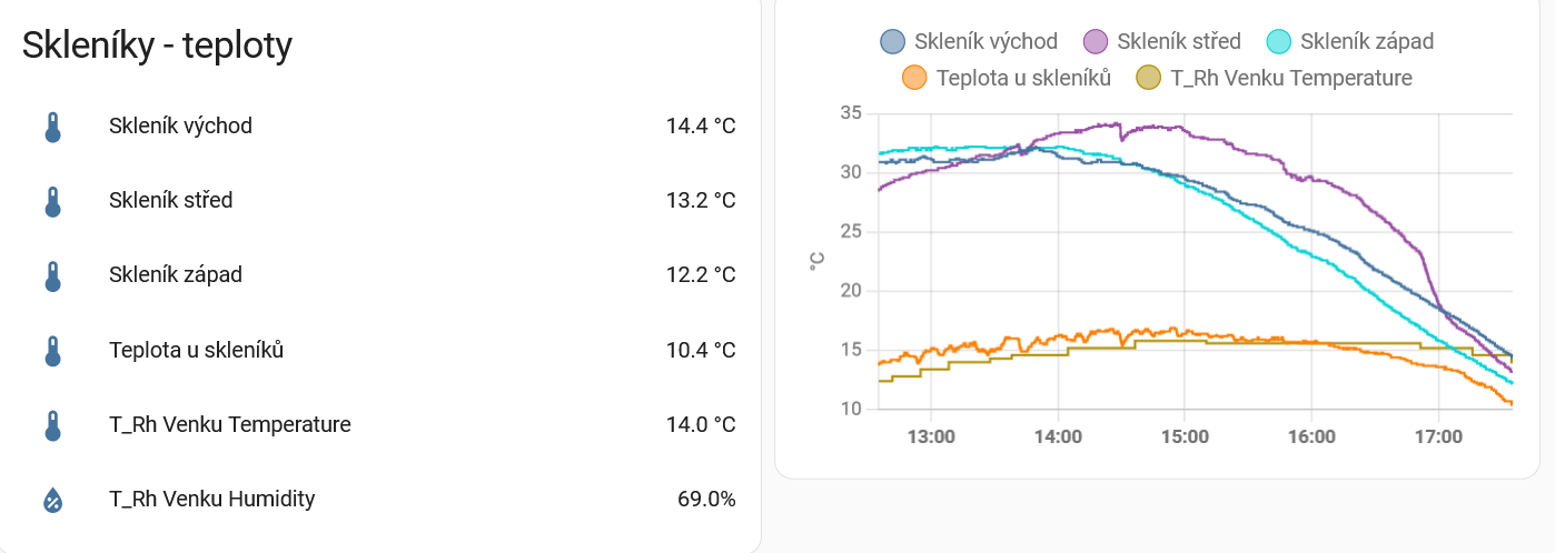 Data končí v Influxdb a zobrazují se v HA: Časem uvidím, jestli se to využije na nějakou regulaci větrání, zatím tam mám automatické otvírače.