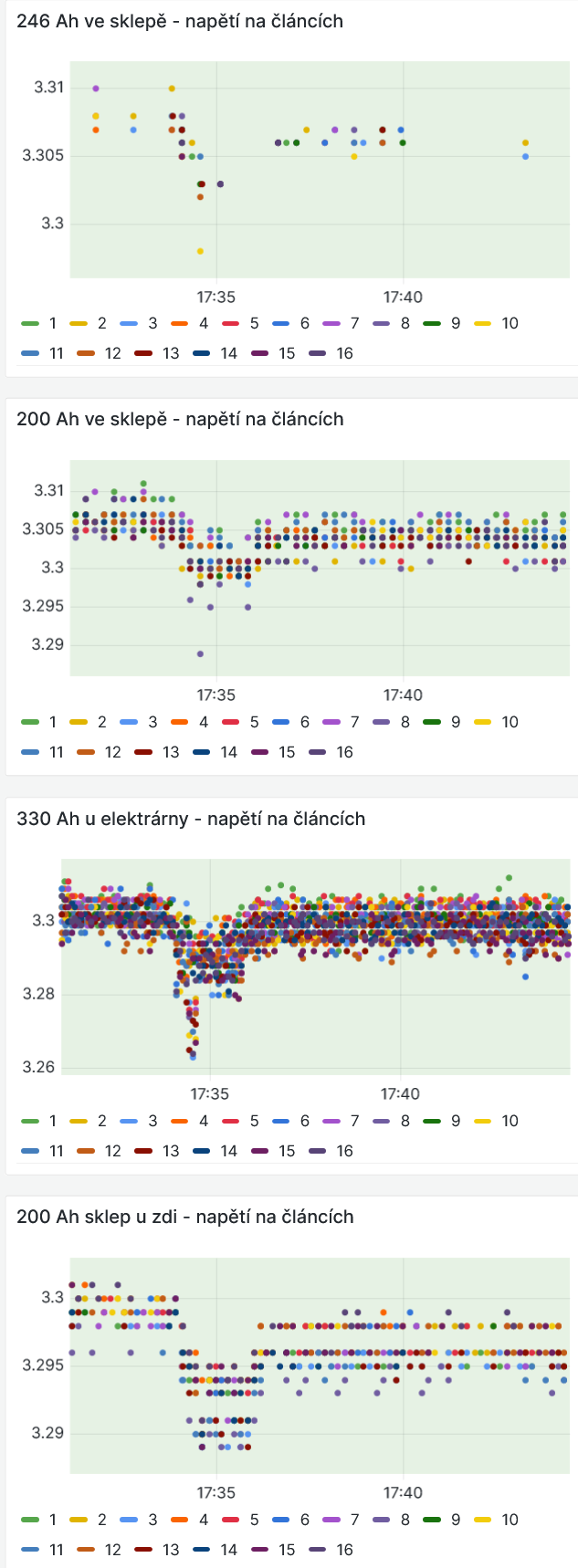U dvou ze čtyř JK-BMS, které jsou připojeny do Home assistant přes sysi - Ble pro JK-BMS