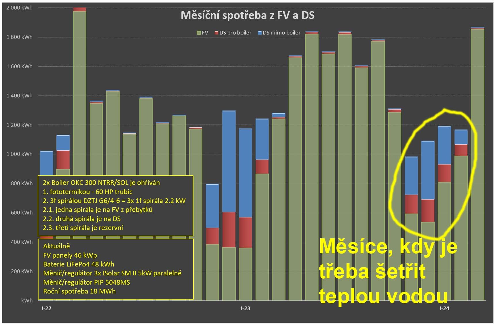Nicméně přínos není takový, jak jsem čekal. Větší dopad na spotřebu má časové okno, kdy se večer dohřívá bojler z DS.