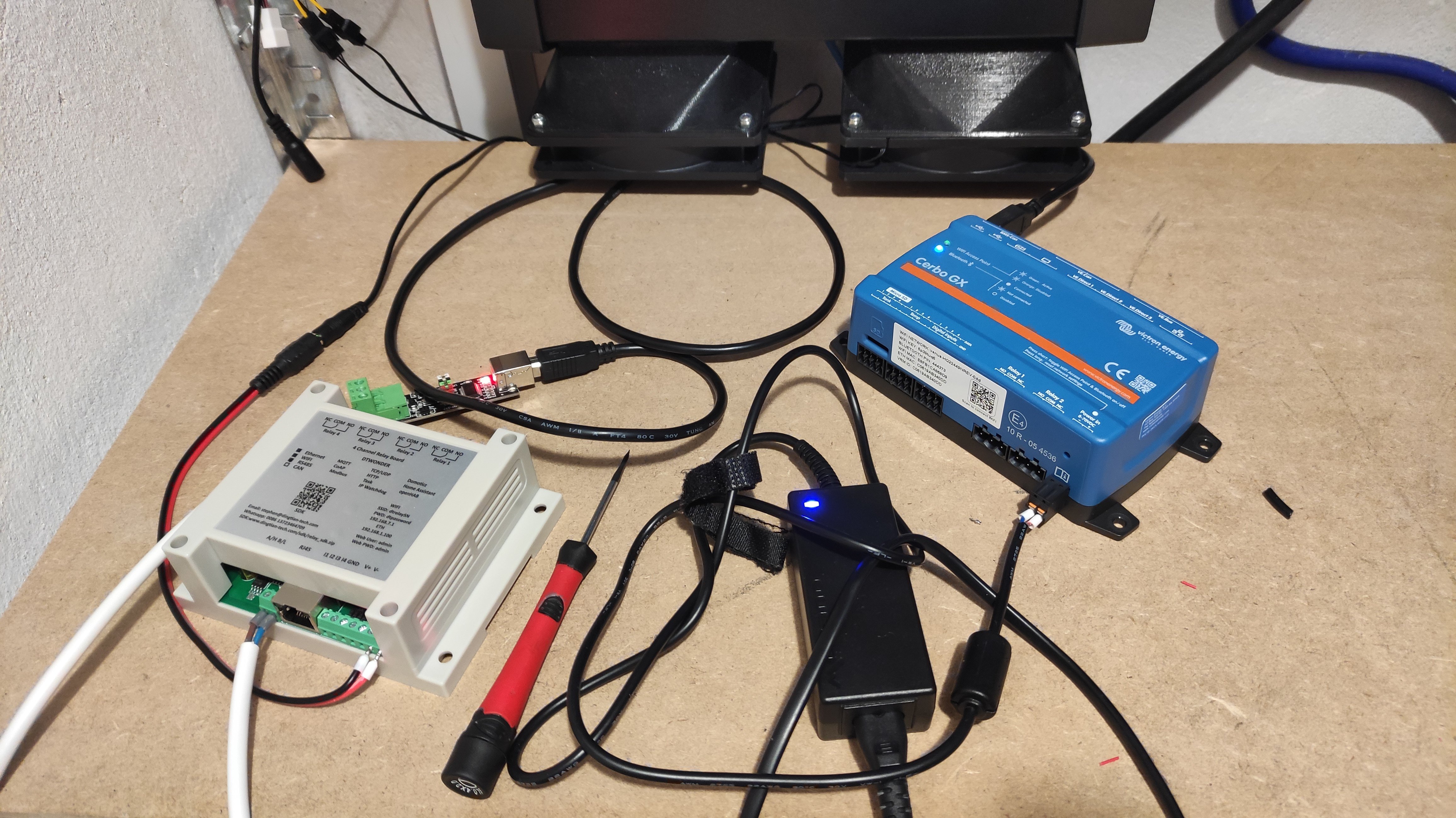 Z USB Cerbo přes převodník do toho 4x relé, co máš vyfoceno na předešlé stránce?