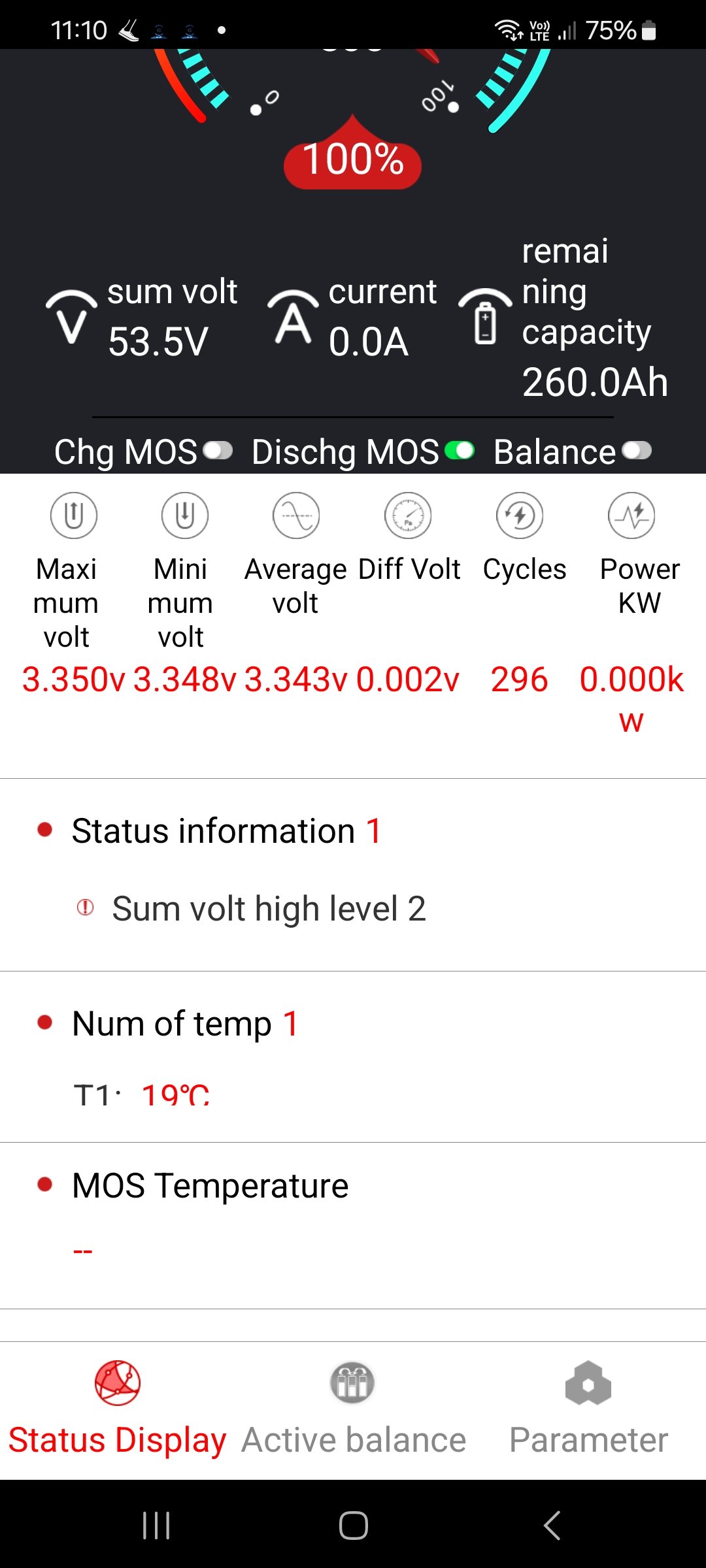 To je bez zátěže? Jak by to vypadalo, kdyby byl aktuální odběr třeba 3 kW?Franta2776 píše: pát bře 22, 2024 12:29 pmScreenshot_20240205_222813_SMART BMS.jpgTakto vypadají vybité bateriemirekcafa píše: pát bře 22, 2024 11:15 amfranta 2776: dotáhl jsem a budu sledovat, zatím je to v pohodě, dnes nabíjí z panelů jen cca 10 Ah takže se to drží do 0,010.