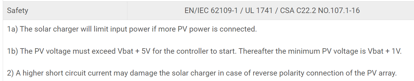 Jo to dava smysl. Bude tam na vstupu antiparalelni dioda nebo transil a ten to v pripade preplovani vzda.pibi píše: pon dub 01, 2024 6:11 pmVždy koukám přímo na victron, ale nechávám si to přeložit Google translatorem. Originál vysvětlivka vypadá takto:Soban píše: pon dub 01, 2024 5:33 pmPS. Osobně bych mrknul přímo k výrobci na originál zda není chyba v překladu.....