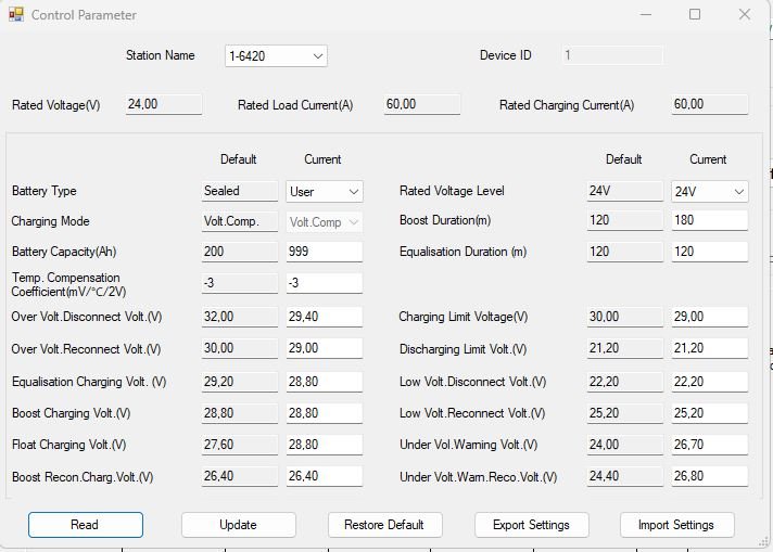 Díky moc ! Mě to vyřešilo problém ignorace vysokého napětí baterie a následného nesnížení výkonu ani neodpojování se regulátoru od panelů.