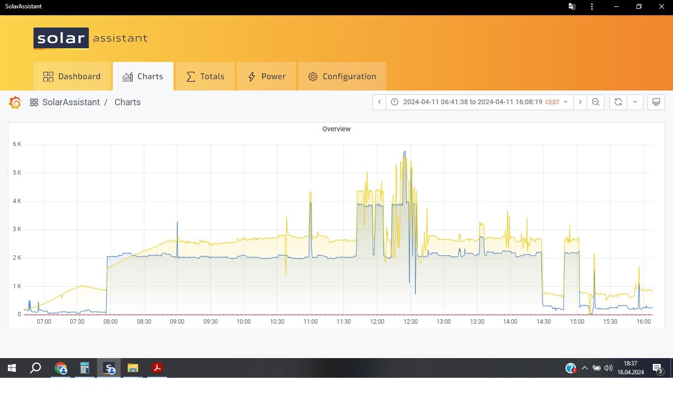 To rva:Ty panely parametrama naprosto vyhovuji Axpertu.V tom problem neni.A ten snizeny vykon za NEidealnich podminek je mi taky jasny.Problem neni v tom,ze panely vyrabeji malo--problem je v tom za Axpert vyuzije vykon ze strechy pouze do spotreby.Jakmile vypnu spotrebice,tak se poflakuje ve FLOATU a odmita naladovat baterii.Ted je mi to treba jedno,ale v zime kvuli tomu zapinam pricuc z DS do spotreby abych vyuzil slunko a vecer koncim s nenabitou baterii.Prikladam namatkovy screen z minuleho tydne.MPPT uzivi veskerou spotrebu,ale do baterky neda vic jak 700-800w behem celeho dne.