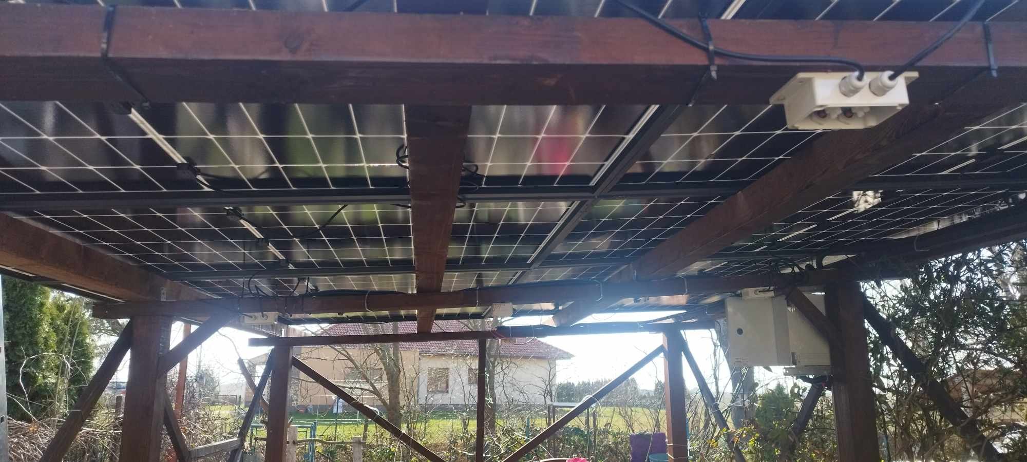 spolu 16,1kWp - JVV 2,2kWp sklon 45°, JJZ 4,9kWp sklon 55°, JJZ 4,4kWp sklon 24°, bifaciálna pergola 4,6 kWp 9°