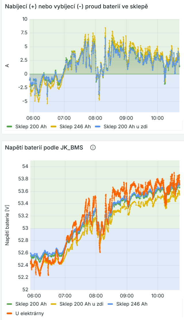Samozřejmě dle napětí to má řadu nedostatků. U levného jednoduchého systému se ale i tak dá celkem odhadnout jestli se baterie nabíjí nebo vybíjí a dle toho zapnout vytěžovač.