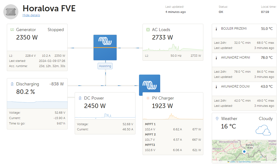 Ale i u nás OK. Život s Lithiem je prostě pohoda. Vypadá to, že v poledne bude vypráno, umyté nádobí, nabitá baterka a bojler opět na 80