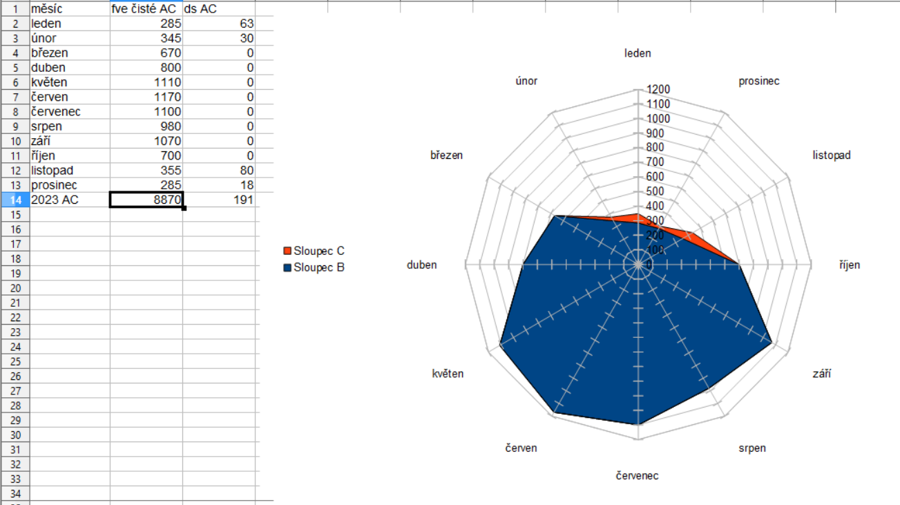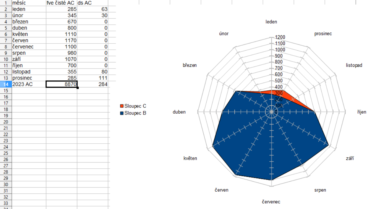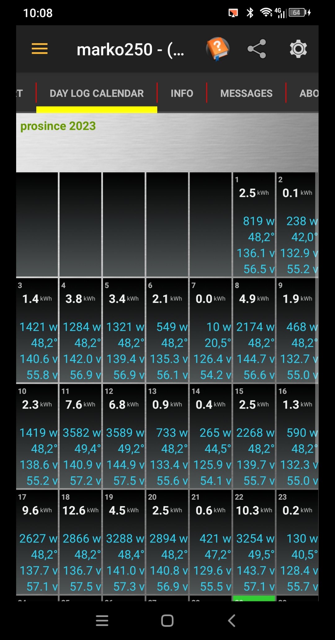 Tak máme tu konec roku, kdy za měničem svítí čistých 46.49MWh ,takže prosinec vzal 285kWh z FVE a 18kWh z DS. Celkově jsem letos spotřeboval 8.87MWh z FVE a 191kWh z DS. Panely na JZ střeše opět bez poklesu výkonu, letos mají maximálku 5448 W,podrobná výroba v příloze 12_2023.ods.Nejhorší měsíc celkově byl listopad a leden. Z FVE jsem uplatnil za osm celých sezón v domě 48.09MWh ,když připočtu počáteční pálení přebytků ještě přez DC a to 1.6MWh.