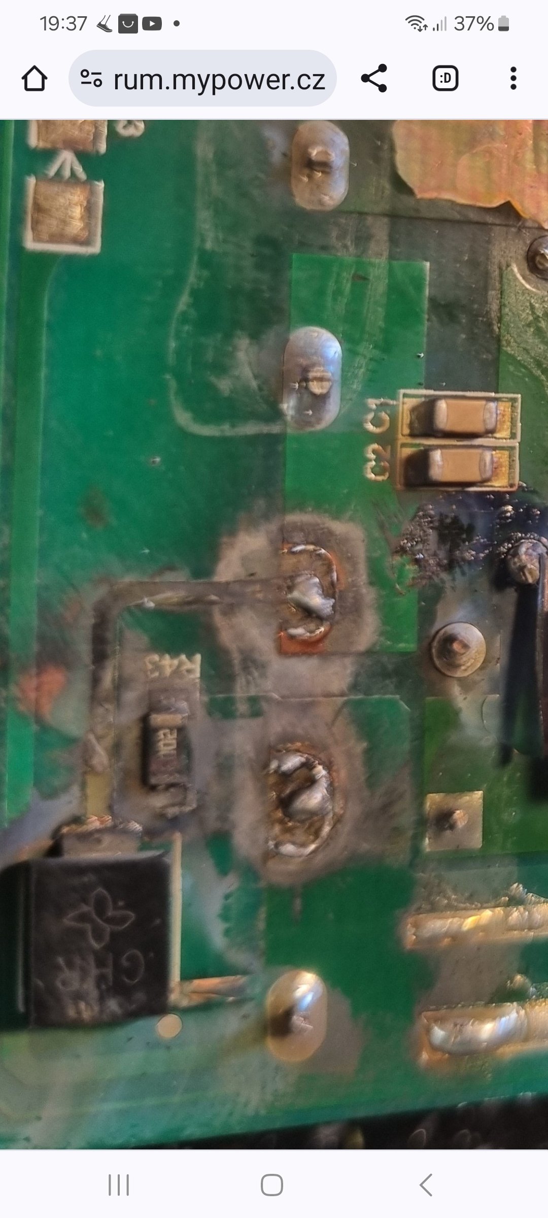 A když se koukneš na kondenzátory tak jsou KO -> nafouklé nutno dát druhé.