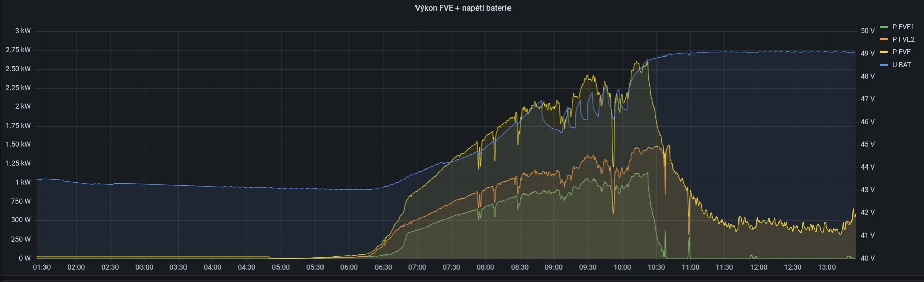 napiš v prosinci jak ti to jede... ted to jede i s 2 kwp panelama každýmuskybor píše: sob kvě 18, 2024 1:30 pmA po pár hodinách trochu lepšího počasí (i při současném dopoledním pečení ) baterky opět full a jedeme dálTakže momentálně od začátku května, kdy jsme najeli na tento nový FVE provoz asi vlastně ještě pořádně špatné počasí pro nás asi nebylo ...