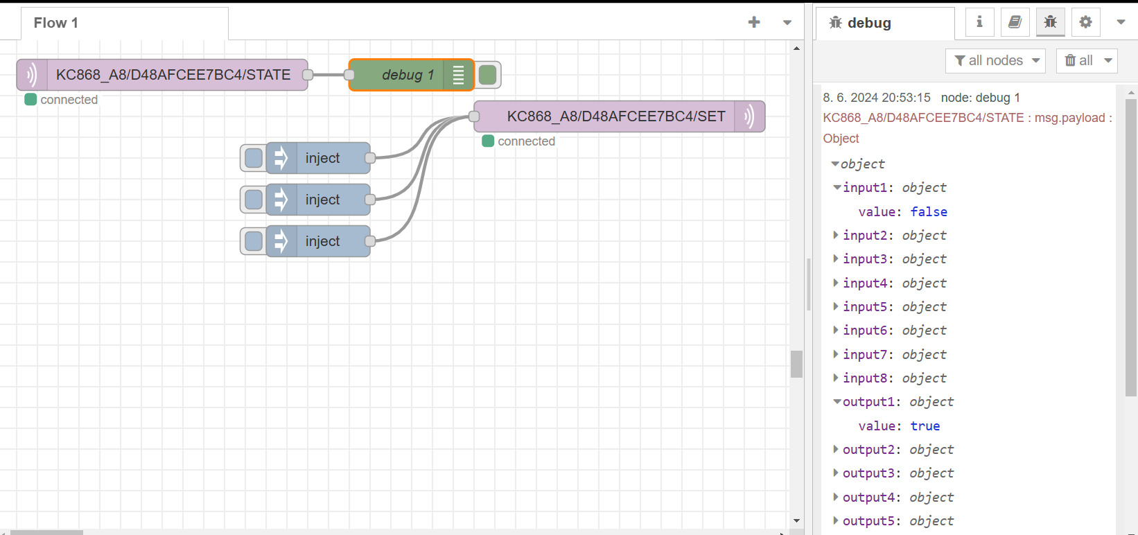 Zdravím. Potřebuji pomoc se čtením stavu relé. Mám desku 8 relé, 8 vstupů plus nějaké senzory. Mám jí připojenou přes MQTT do Node Red na RPI s VenusOS. S ovládáním relé není problém, ale deska vrátí informaci o stavu všech relé a vstupů naráz. Potřeboval bych z této informace vyčíst stav jednotlivých relé a vstupů.