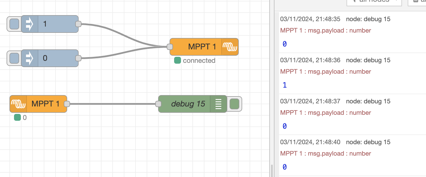 Koukam, ze diskuze se od puvodniho tematu dost vzdalila. Ale co se tyka rele na MPPT, tak asi od jara 2024 uz je mozne ho z Node-RED ovladat. Jak je tady https://communityarchive.victronenergy. ... e-red.html zmineno, musi se napred pomoci VictronConnect prepnout do manual modu. Solar Charger Control na vystupu zatim rele nema. Je mozne vyuzit reseni popsane tady https://community.victronenergy.com/t/s ... rpi/7136/2 , ale je to slozite na pochopeni, zabralo mi to cely vecer. Pak jsem zjistil, ze se da pouzit Custom Control, vybrat Measurement: /Relay/0/State a poslat tam 0x01 (on) nebo 0x00 (off).