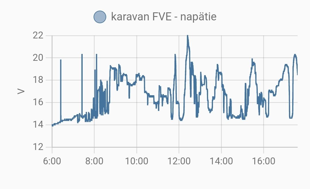 pekne to aj na grafe vidiet, ako sa prebudza. potom uz ide stabilne az do vecera okrem 7 burok co sa tu dnes prehnali. aj tie vidiet na grafe, kde sa napatie prepadlo skoro az k Ubat. medzitym oblacnost ako v aprili, takze raz slnko, raz tma...